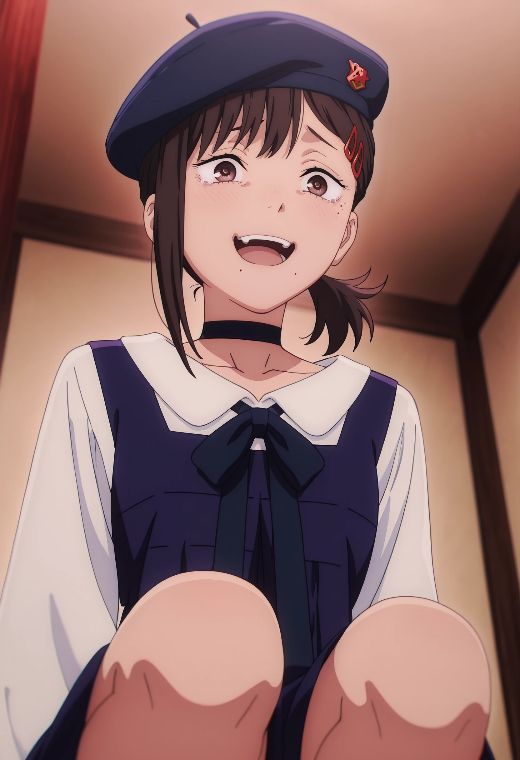 optional: beret, blue headwear,