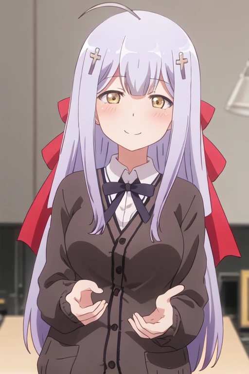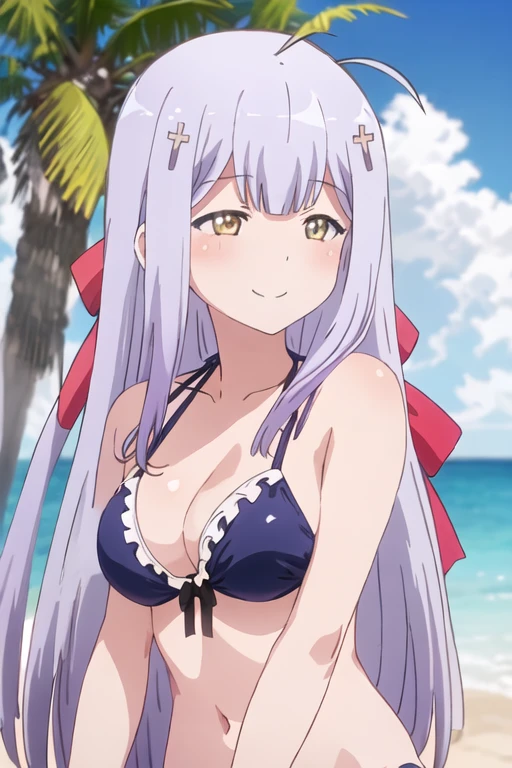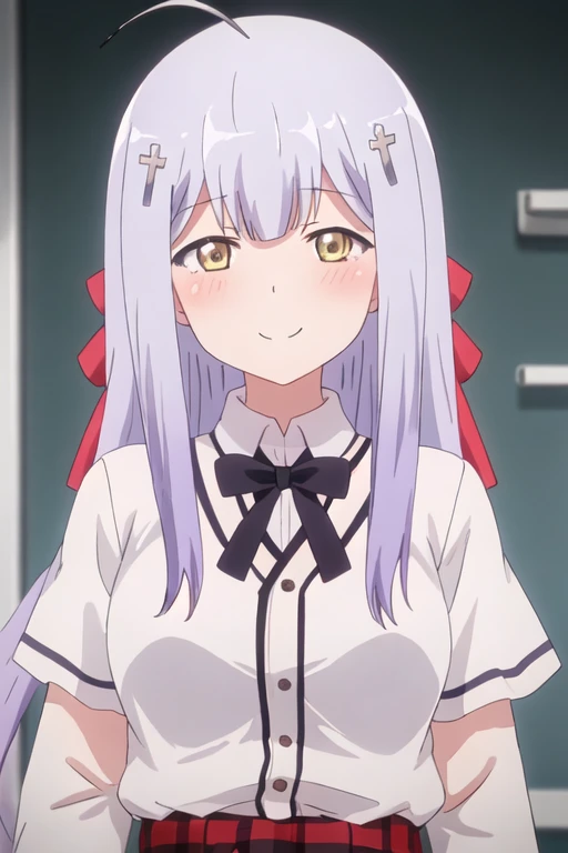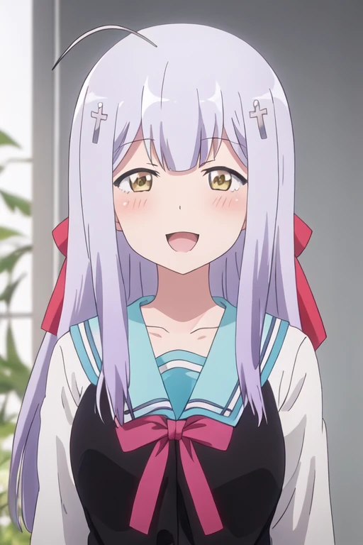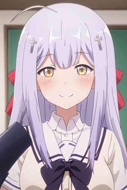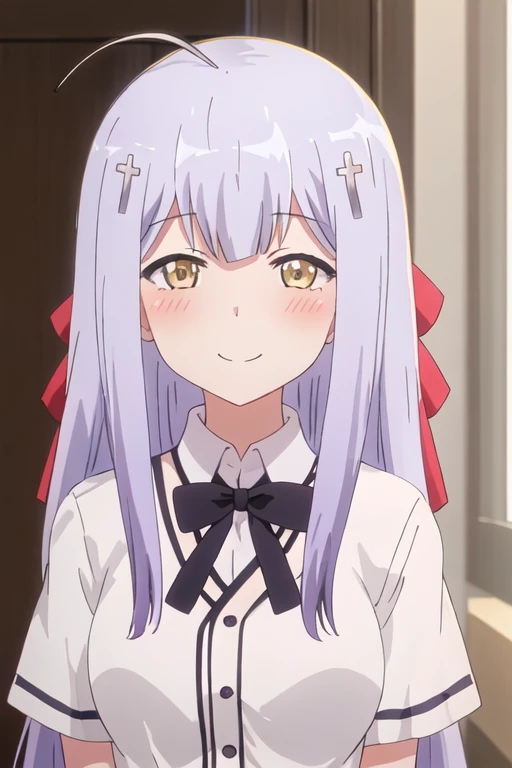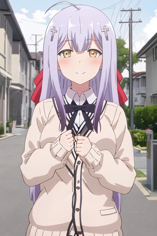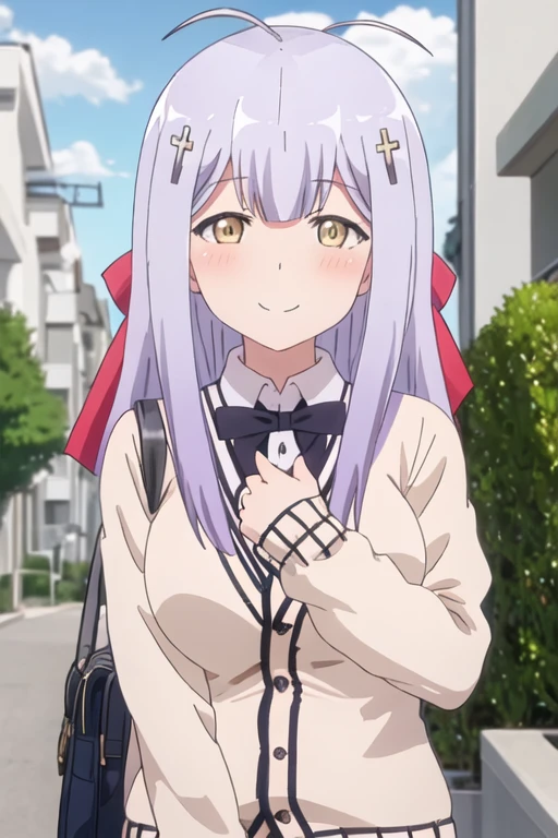 The trigger word is raphiel_shiraha_ainsworth_gabrieldropout, and the recommended tags are best quality, masterpiece, highres, solo, {raphiel_shiraha_ainsworth_gabrieldropout:1.15}, long_hair, hair_ornament, cross_hair_ornament, smile, ahoge, bow, blush, closed_eyes, light_purple_hair, yellow_eyes, hair_bow.