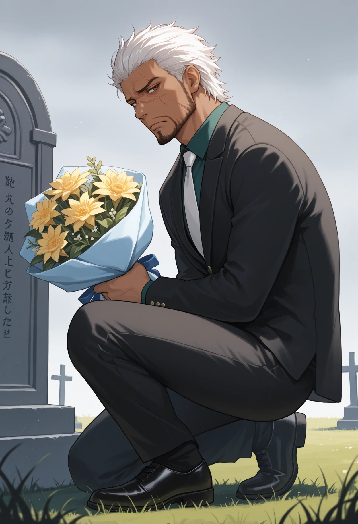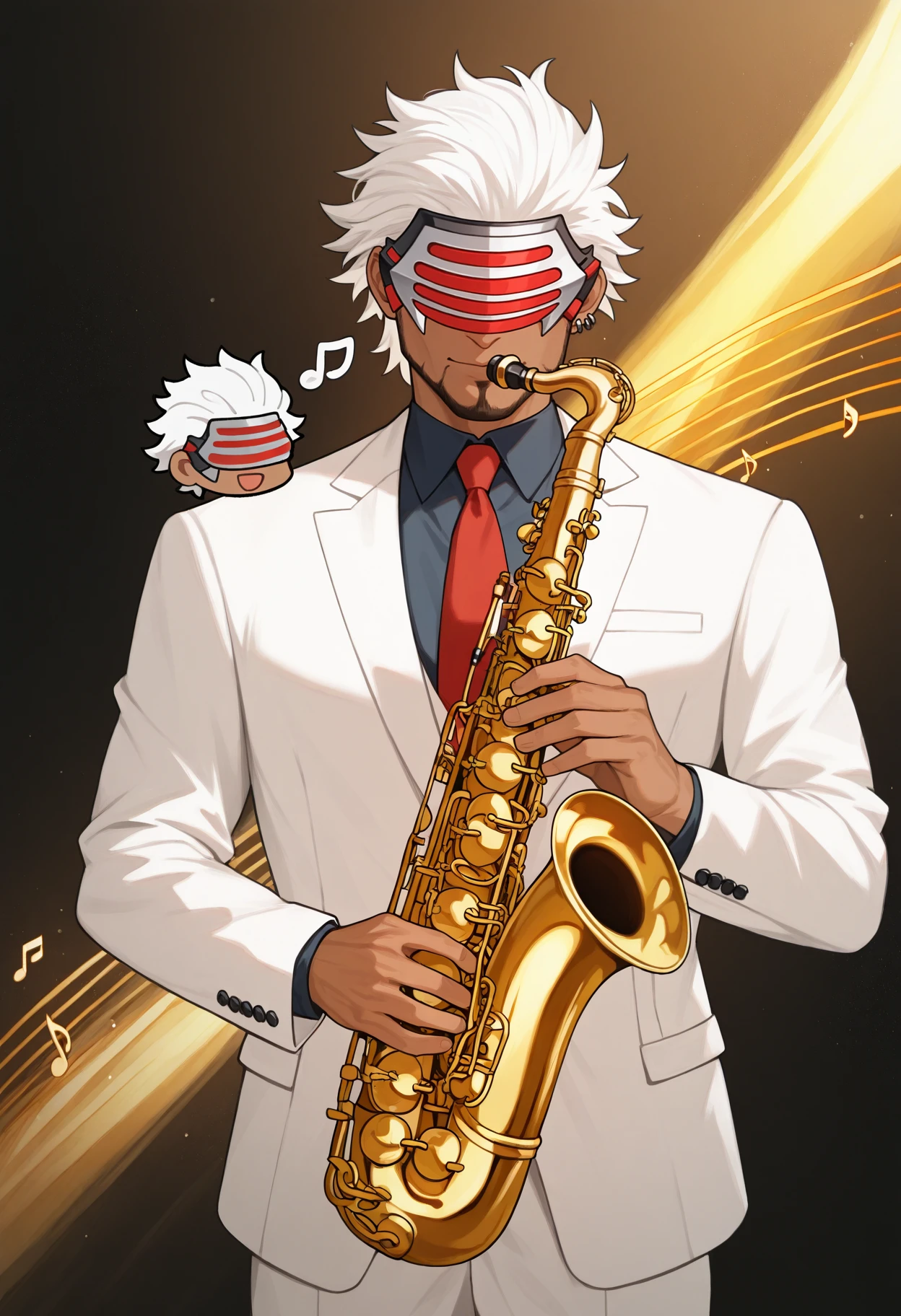 gdAA, white hair, short hair, mask, covered eyes, dark-skinned male, beard