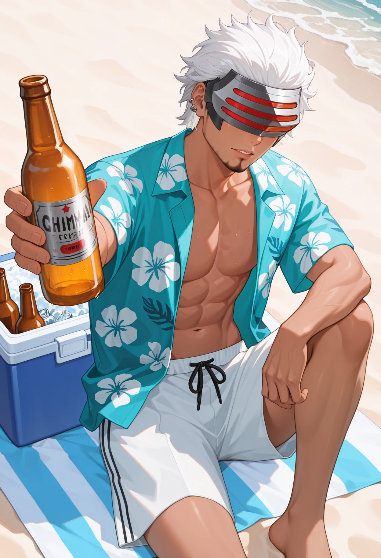 Custom outfit: gdAA, white hair, short hair, mask, covered eyes, dark-skinned male, beard
