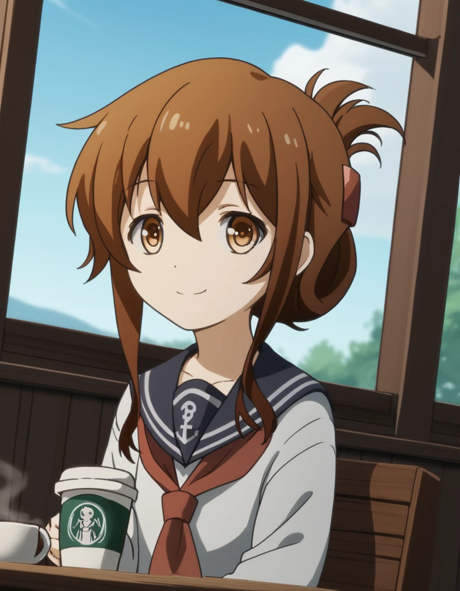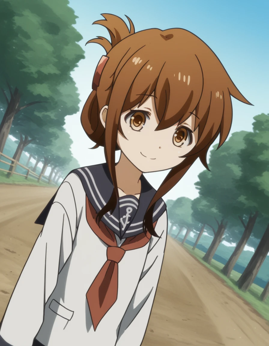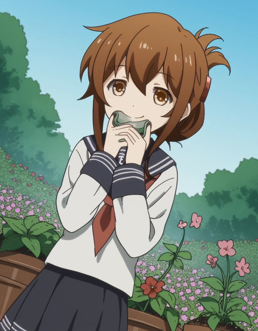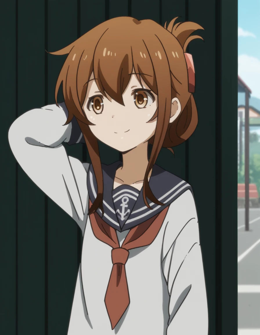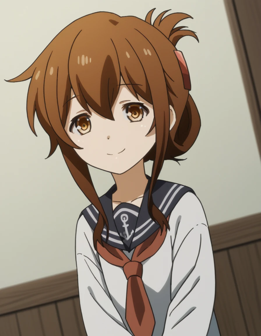inazuma, long hair, brown hair, brown eyes, folded ponytail, inazuma (kancolle)