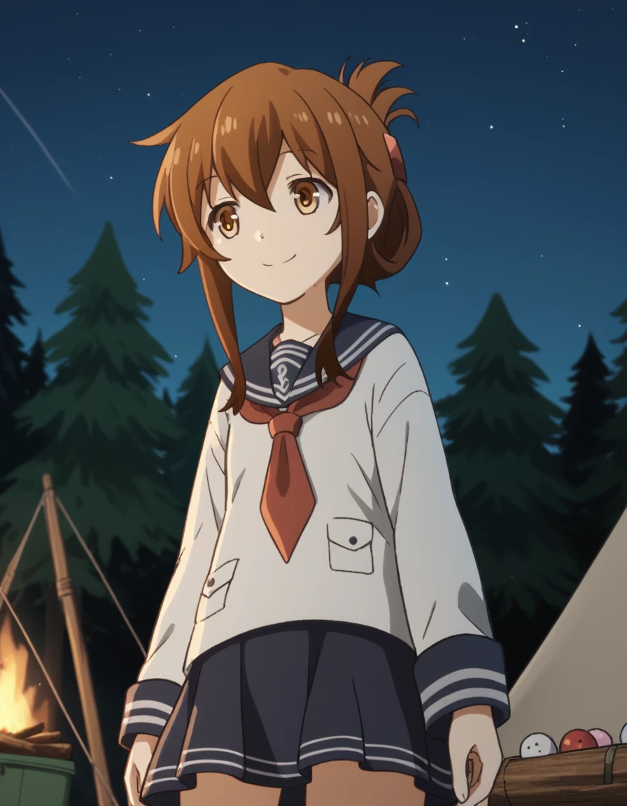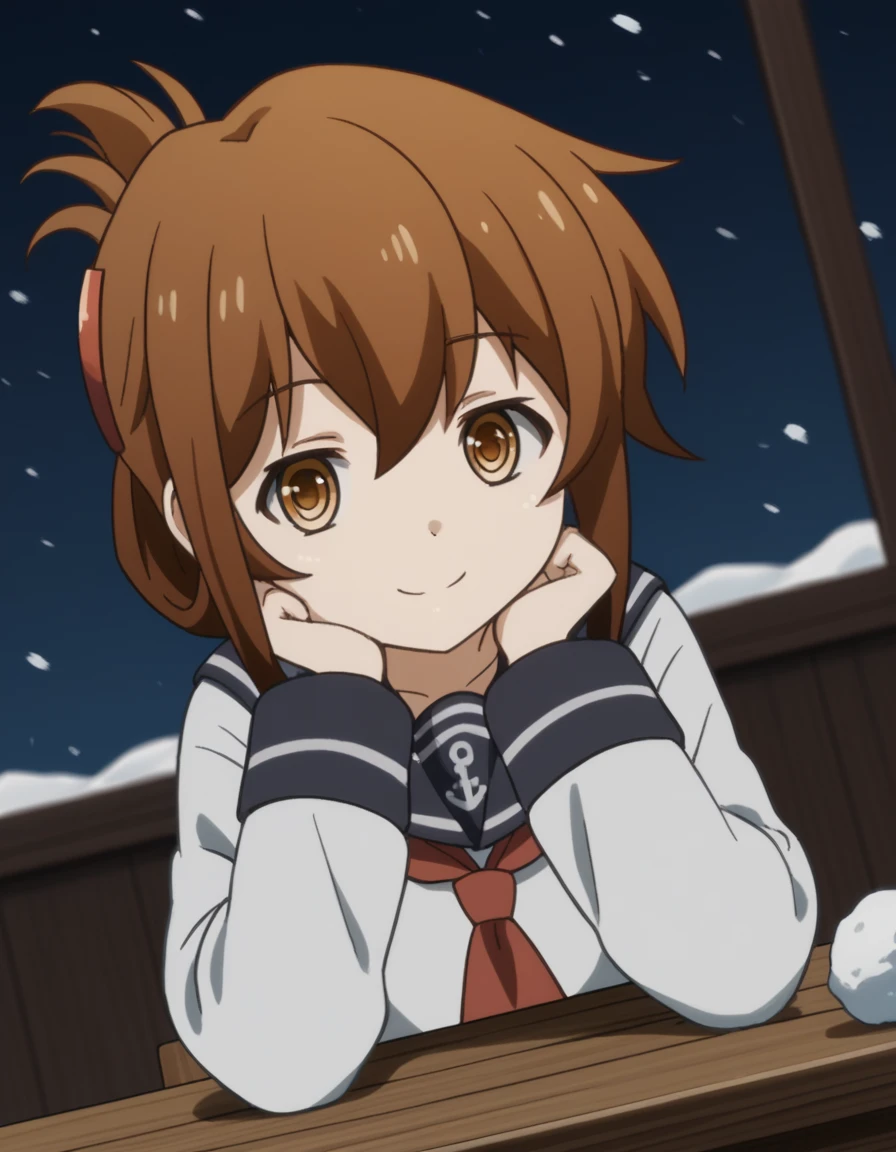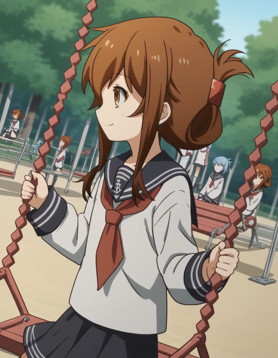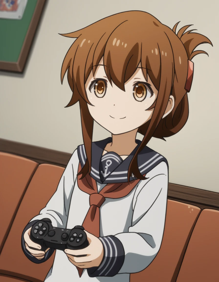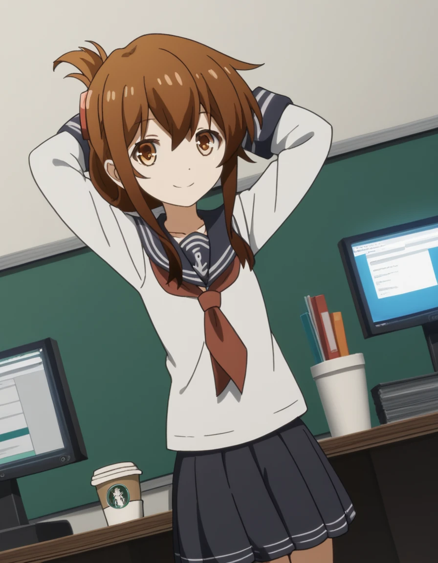 inazuma, long hair, brown hair, brown eyes, folded ponytail, inazuma (kancolle)