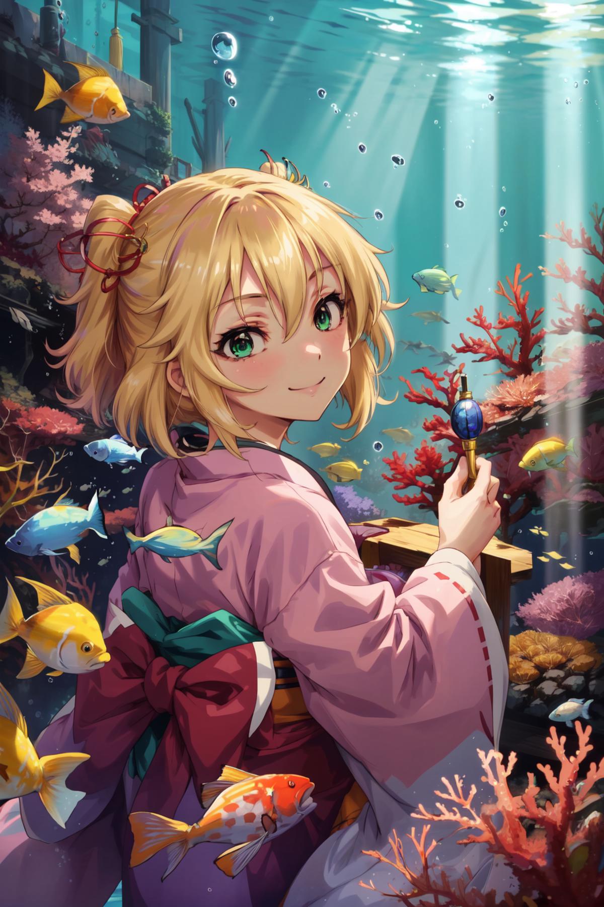 Adorning her real costume, your waifu takes charge of ocean palace.