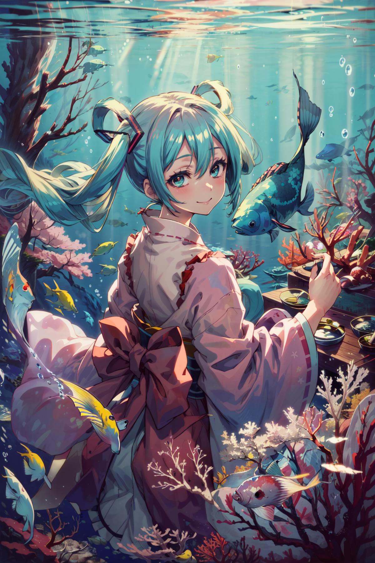 The last female Halloween LyCORIS! Your waifu embraces the legend and costume of Otohime! Her beauty shall be known by the kind hearted lovers of the sea. In terms of generations, if you're having trouble with the hair, just increase the weight for hair rings and tied hair. You can also try lowering your character LoRA and using descriptors of them to make sure they're still somewhat recognizable.