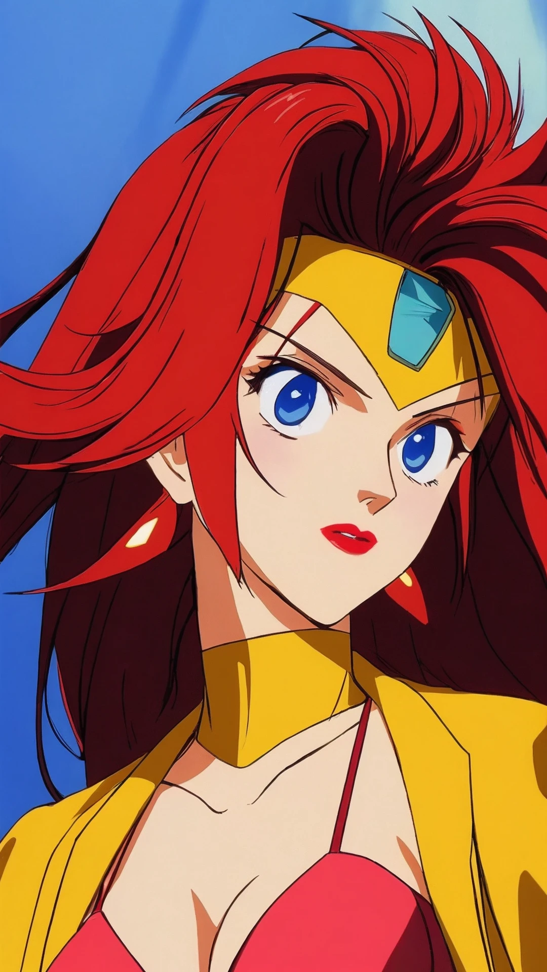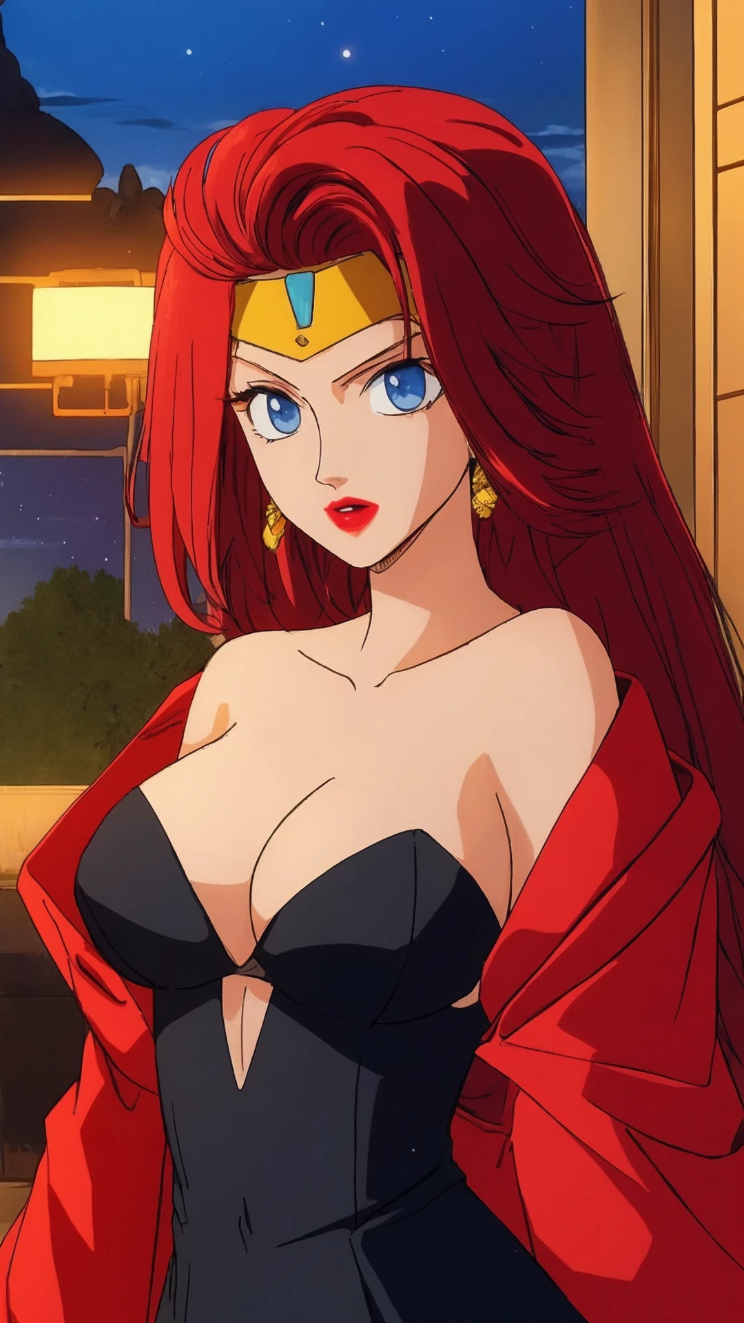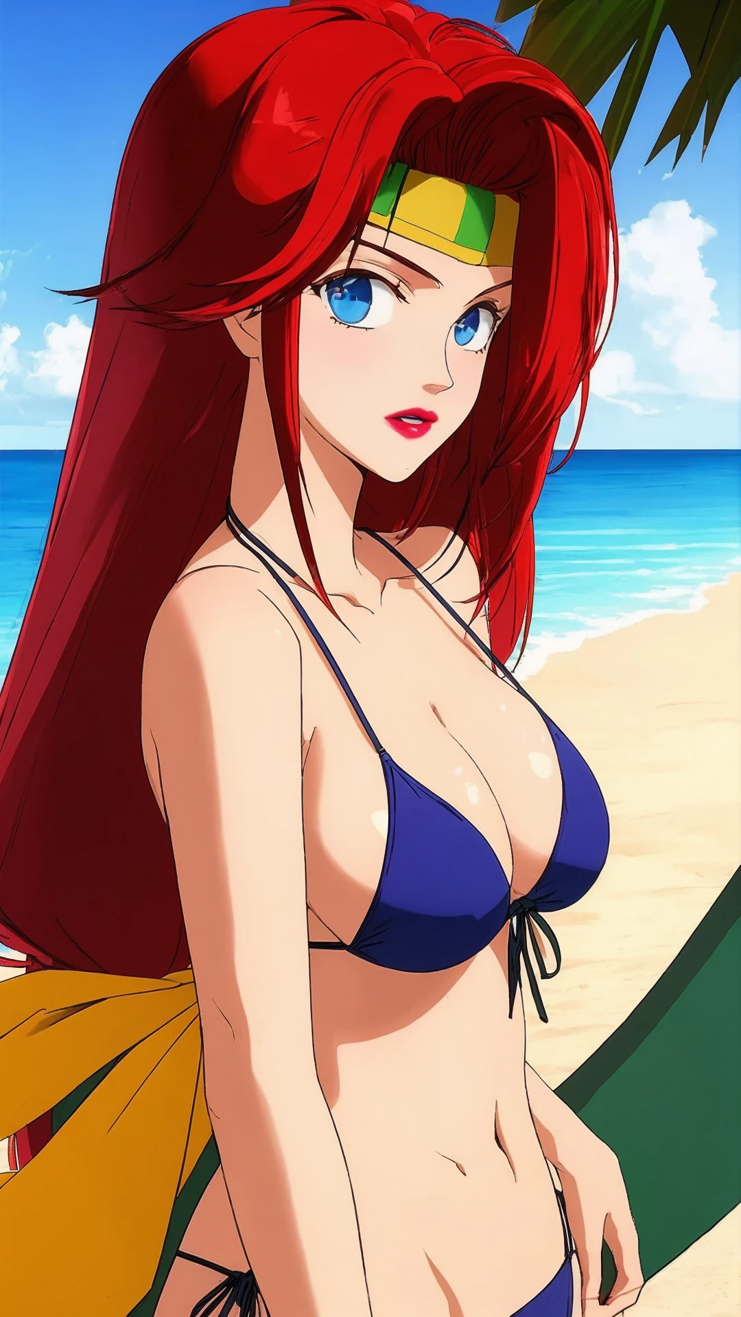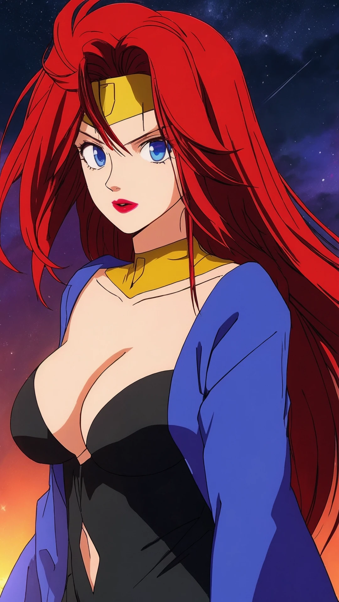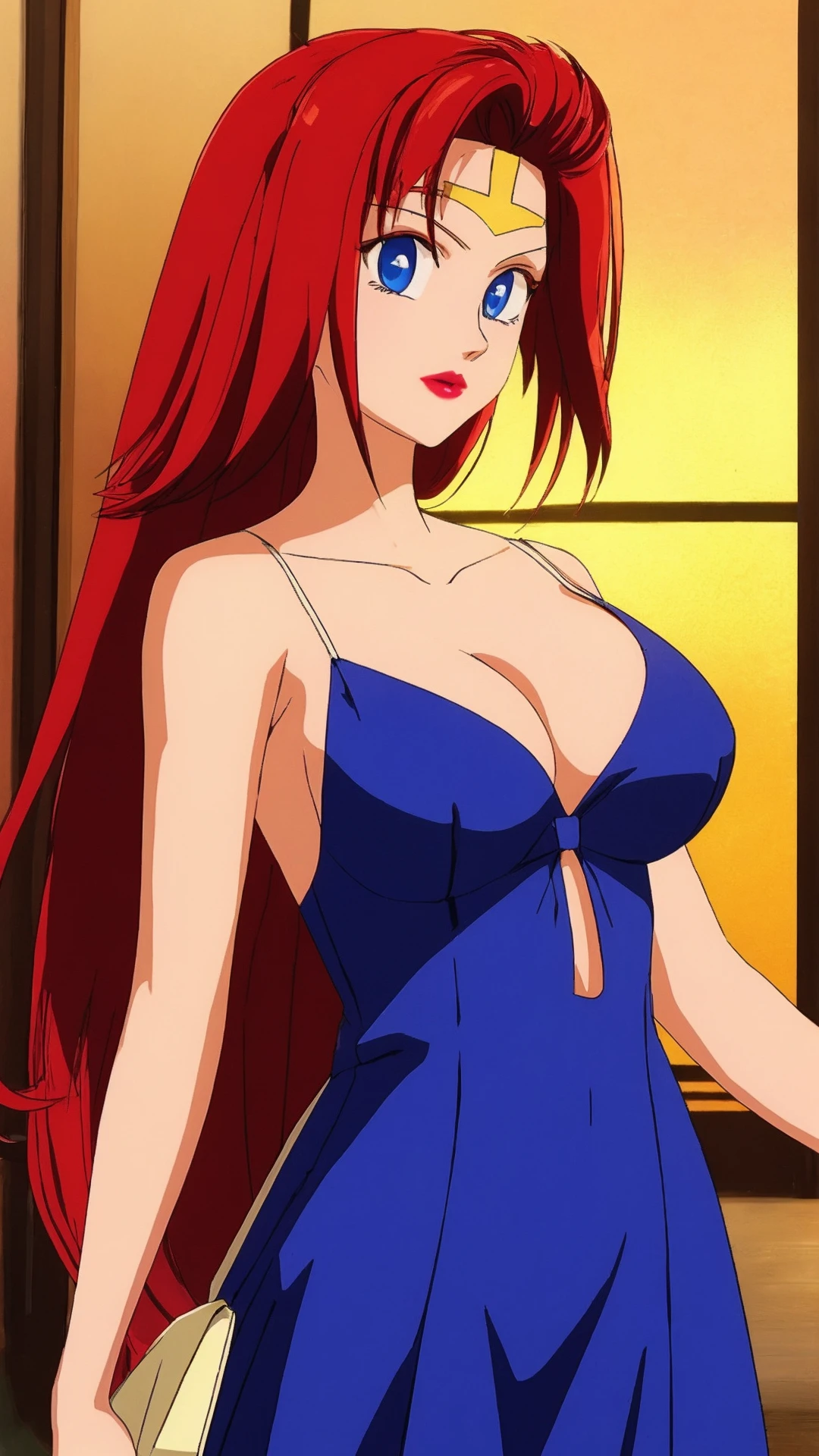 Enuma, Red Hair, Long Hair, Blue Eyes, Lipstick, Cleavage, Big Breast,