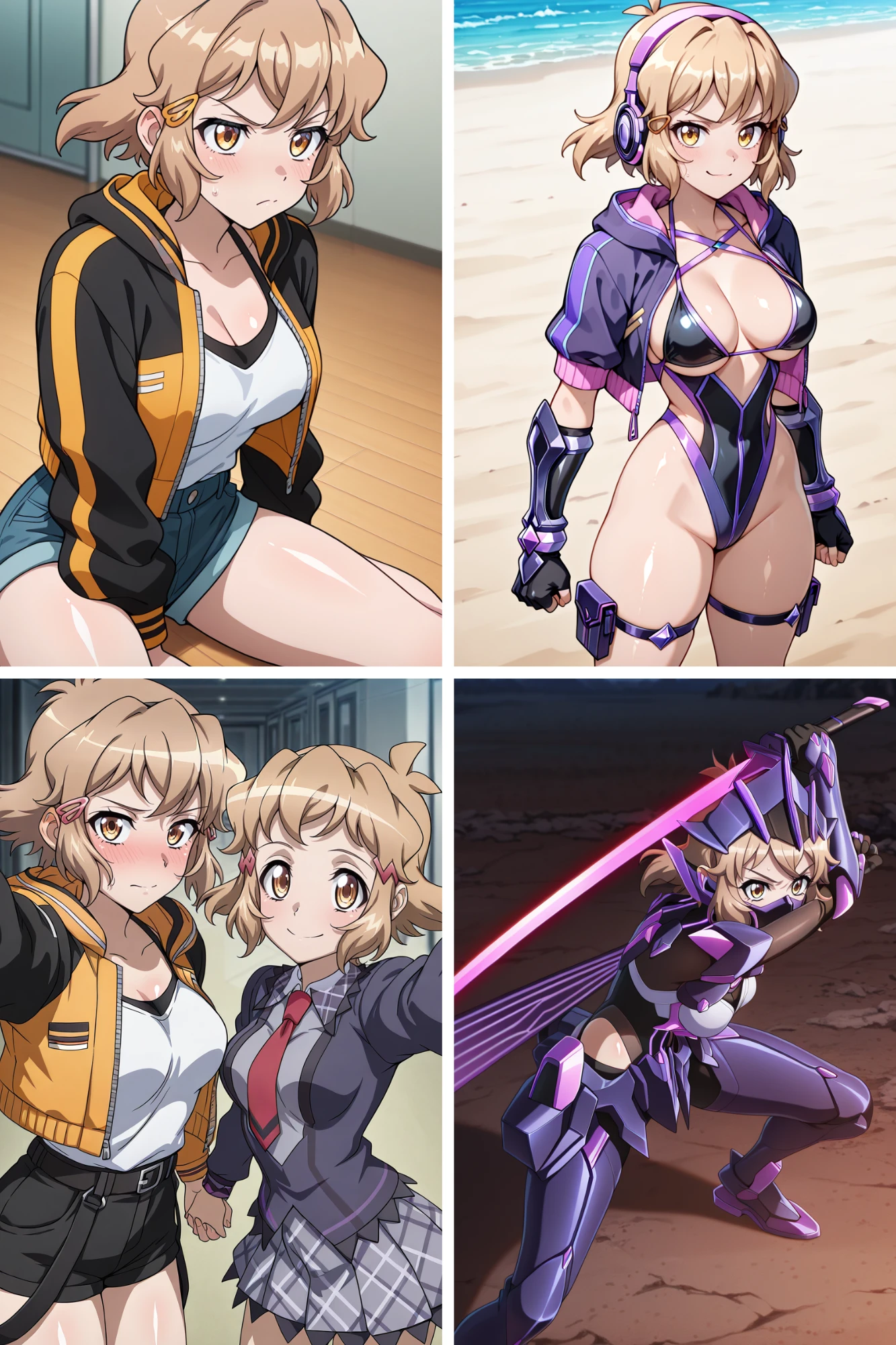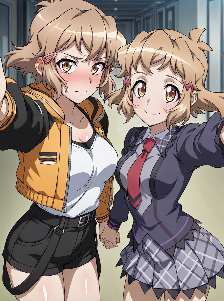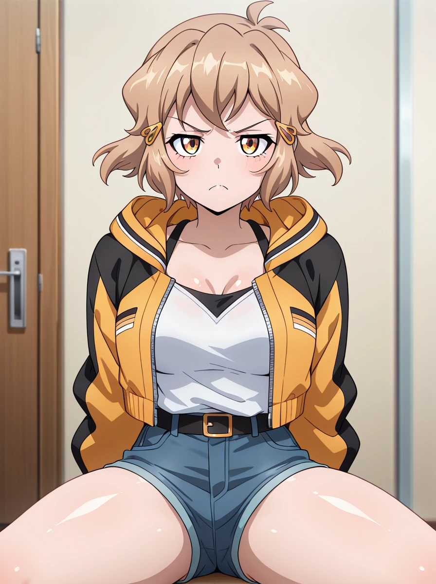 Casual: anotherhibikicasual jacket, short_shorts, grumpy yellowhairclip