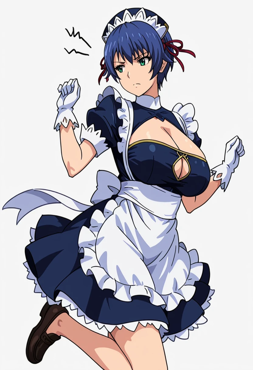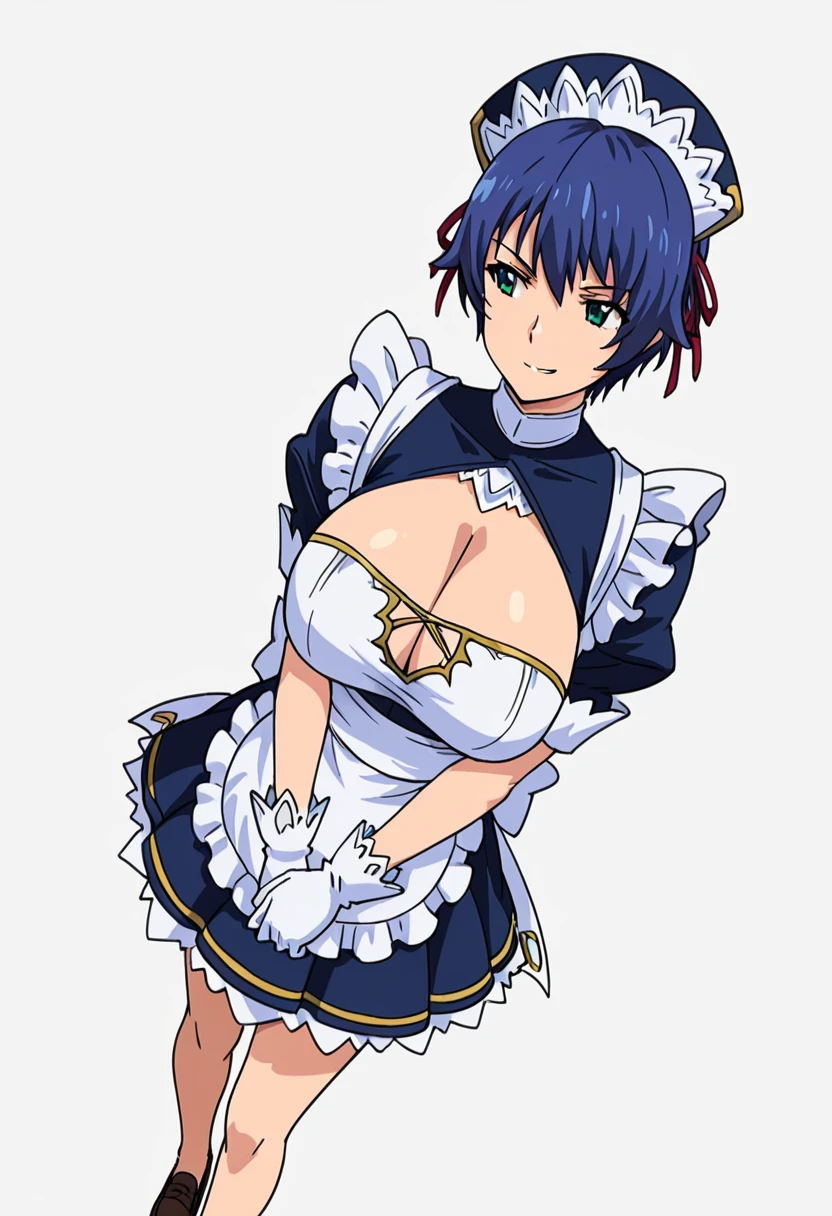 as1_cnr,maid dress, maid headdress, cleavage cutout, clothing cutout, short sleeves,white gloves, ribbon, bow, apron,loafers, Explanation and notes below👇