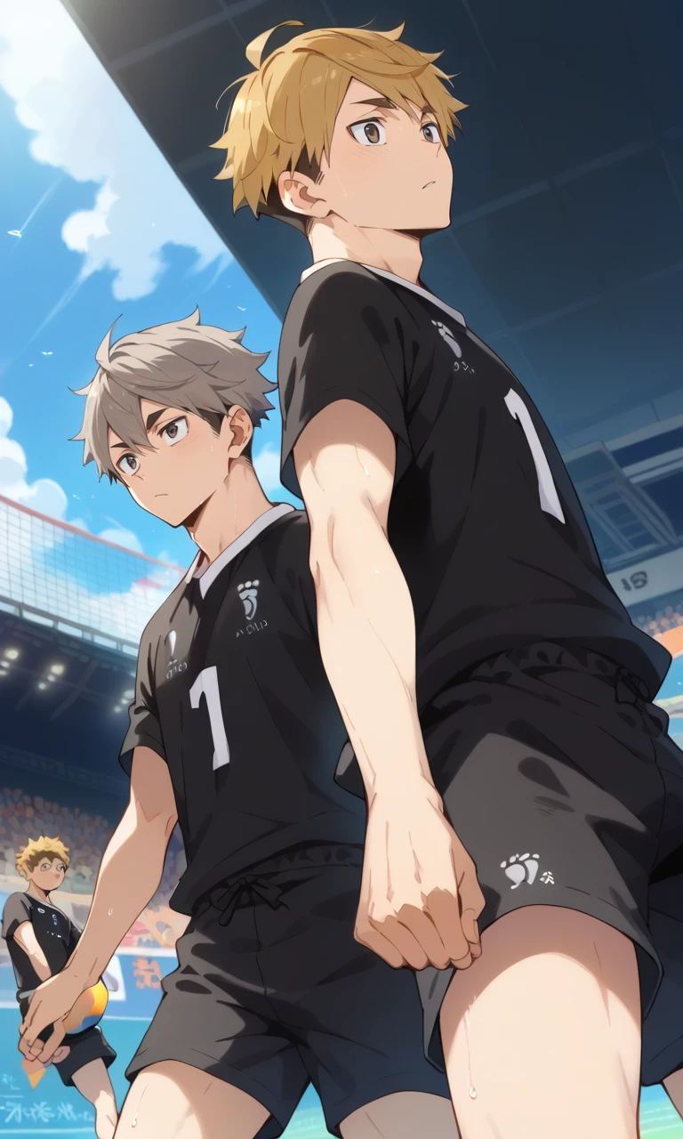 Atsumu, blonde hair, brown eyes, two-toned hair