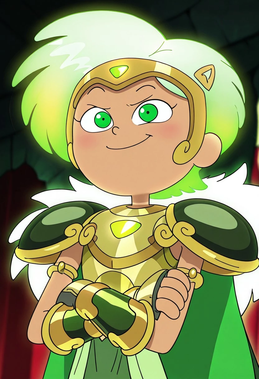 MarcywuA,Green hair, short hair, shiny hair, green eyes, green and gold hair clip