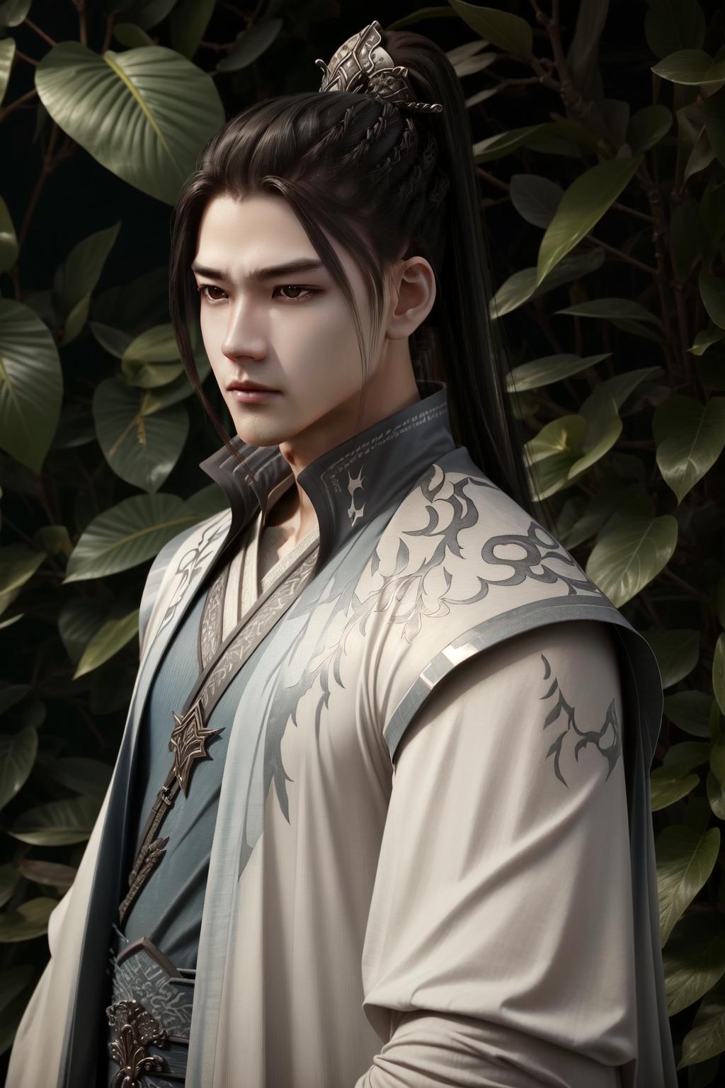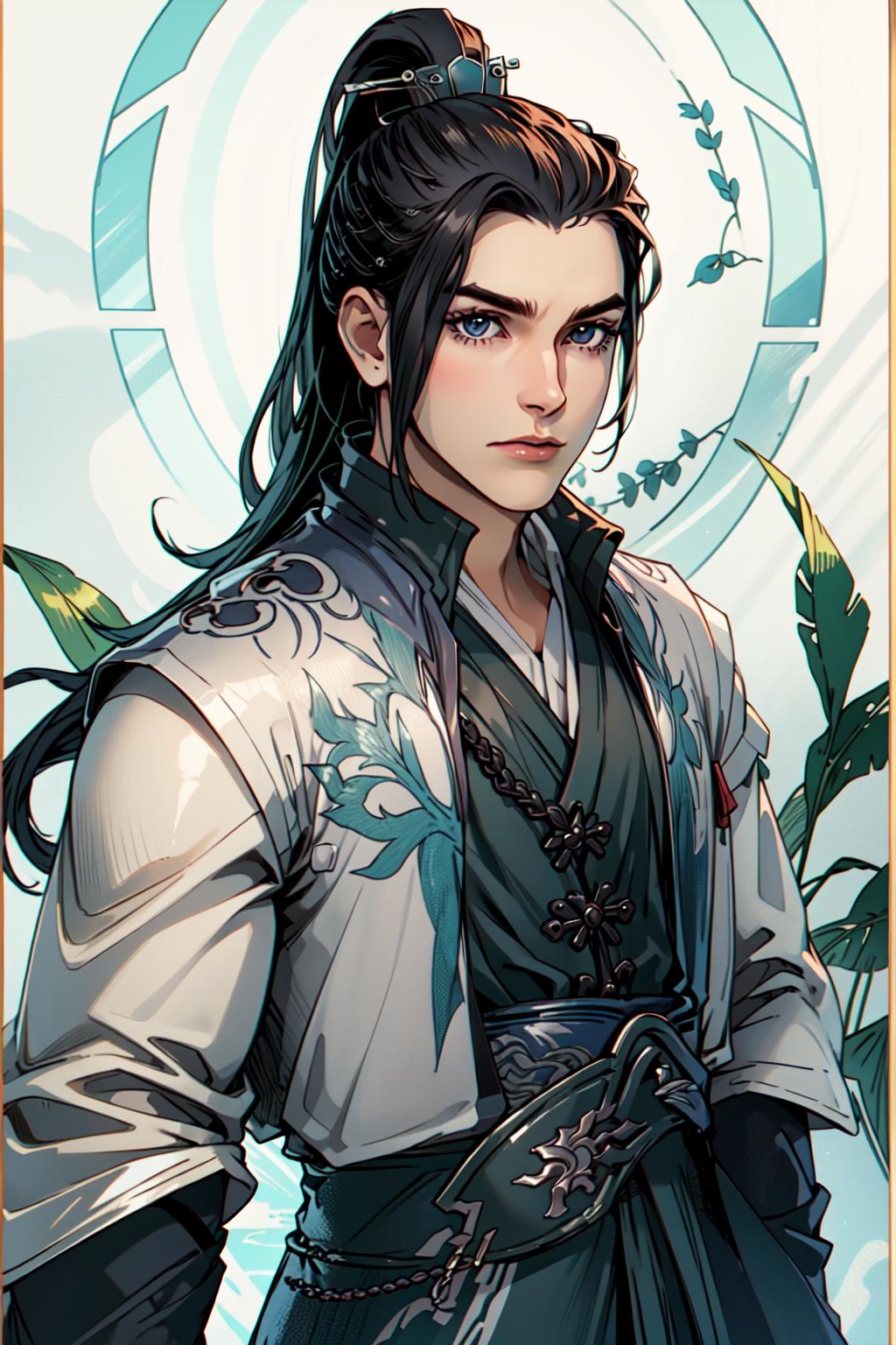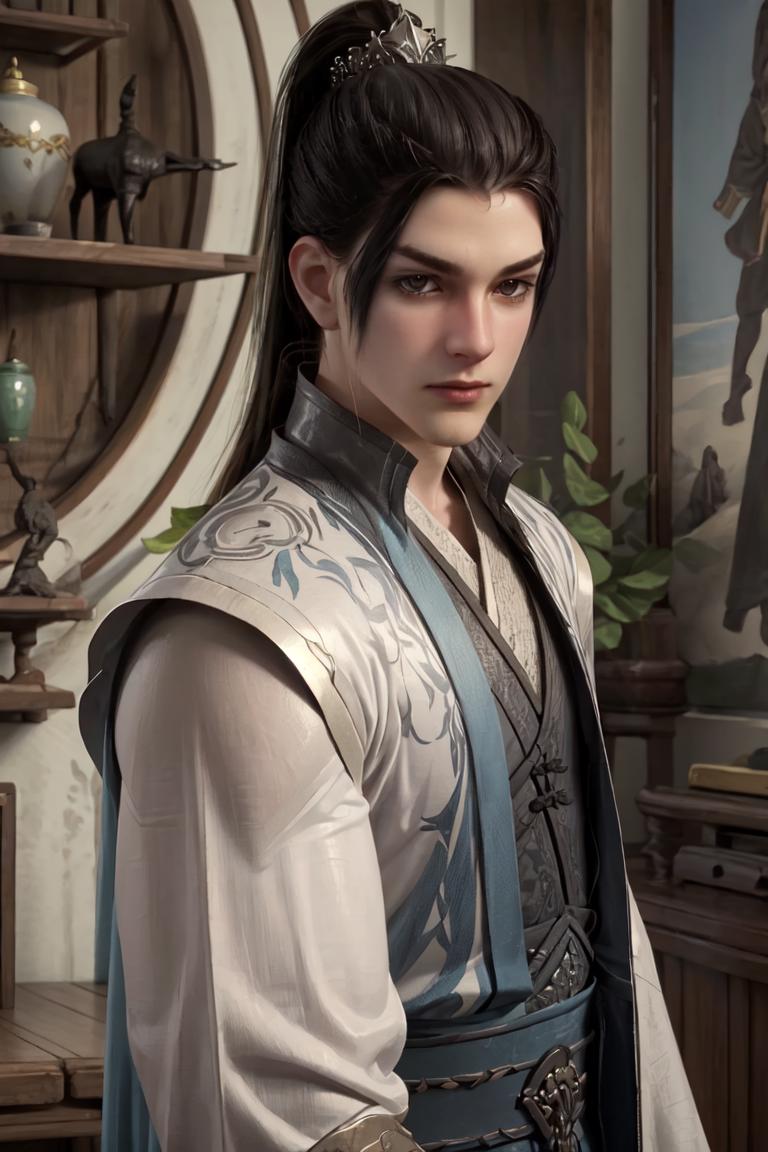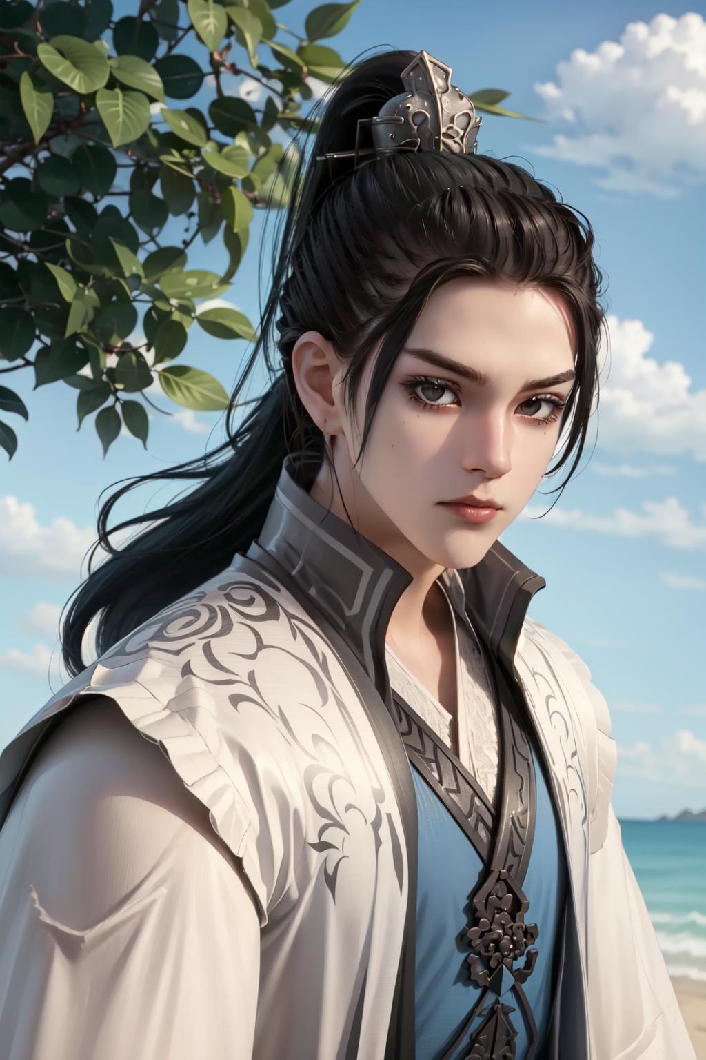 tags: liu qingge, 1boy, male focus, chinese clothes, ponytail, hair ornament