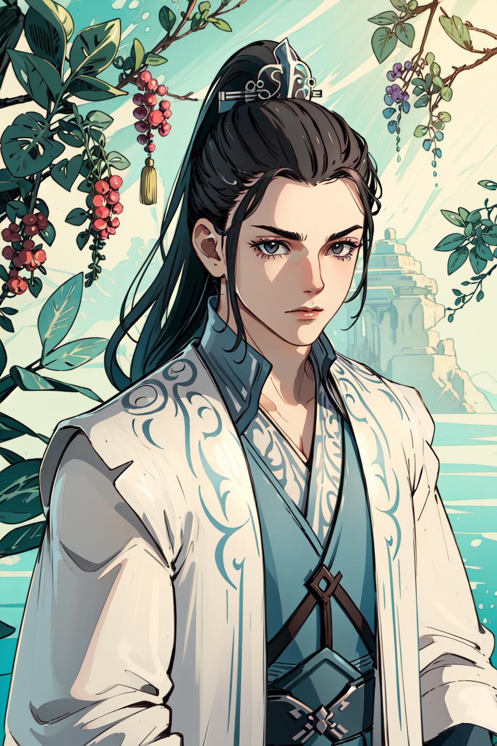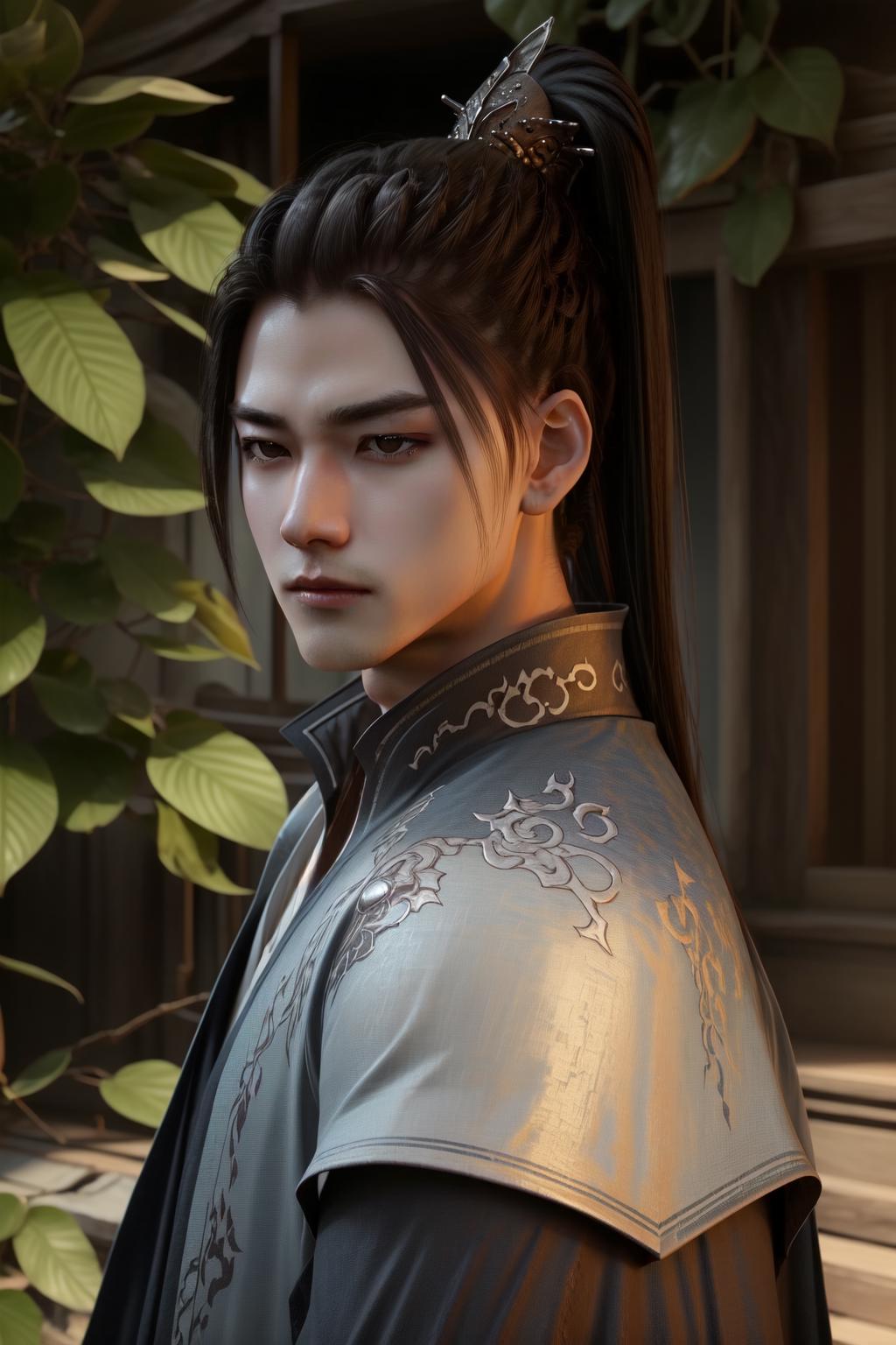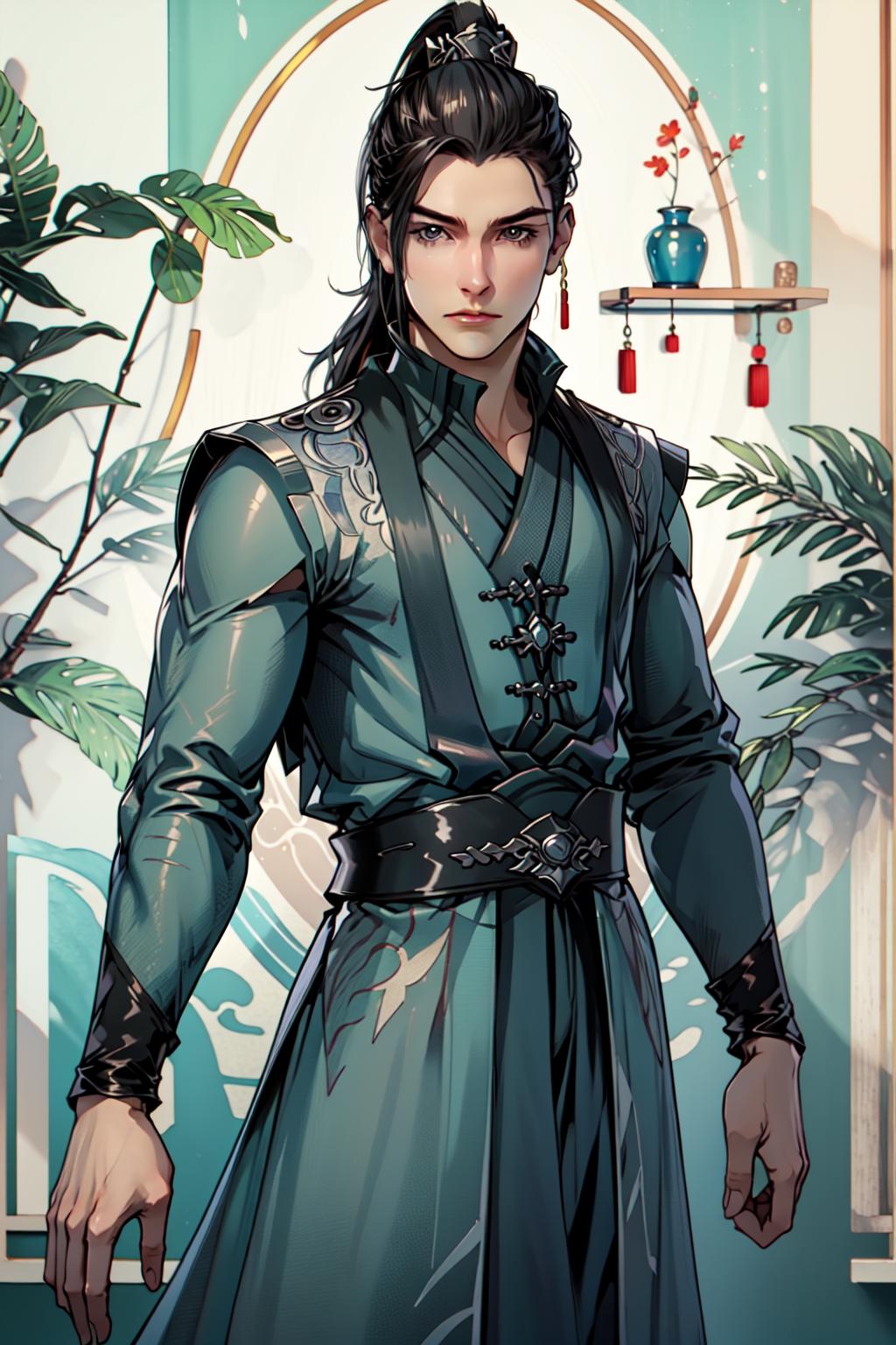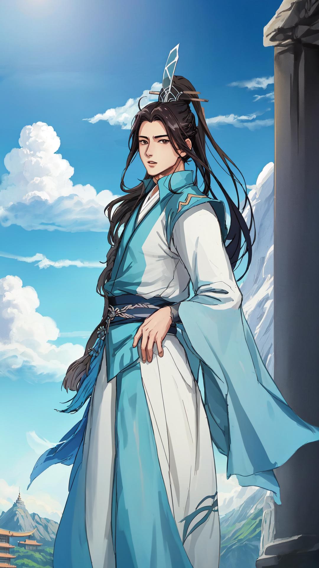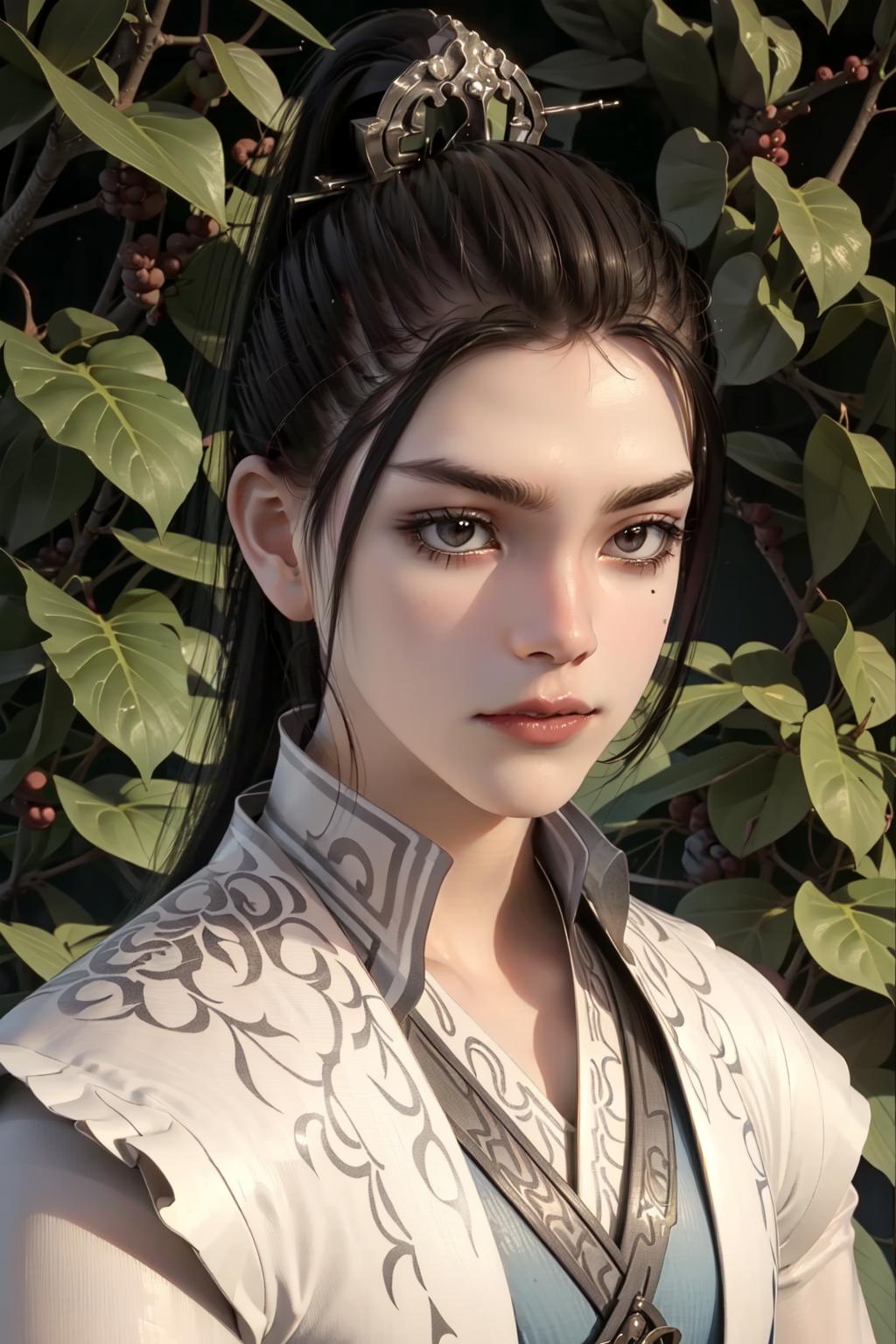 tags: liu qingge, 1boy, male focus, chinese clothes, ponytail, hair ornament