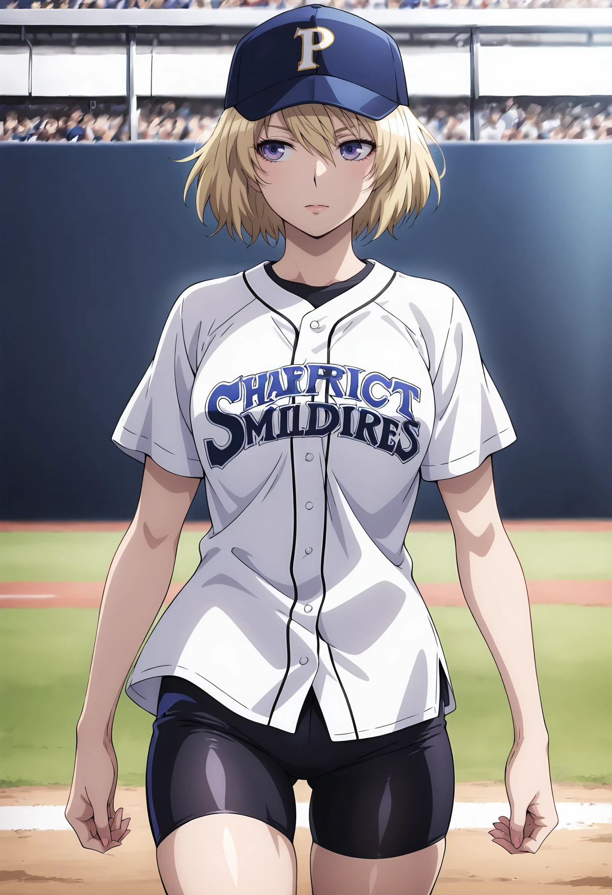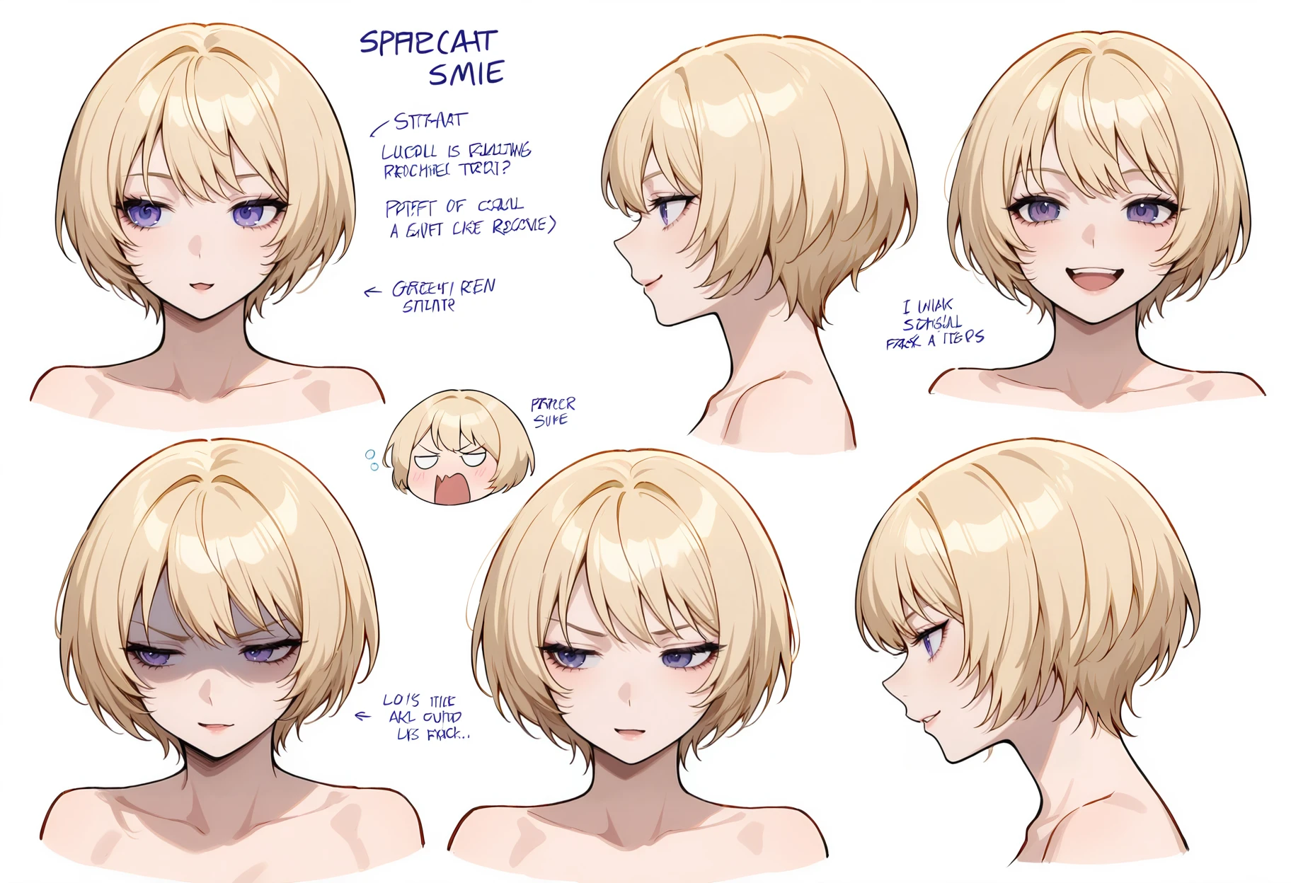 Francine Appearance: Brigadier_F1,1girl,purple eyes,blue eyes,short hair,blonde hair,bangs