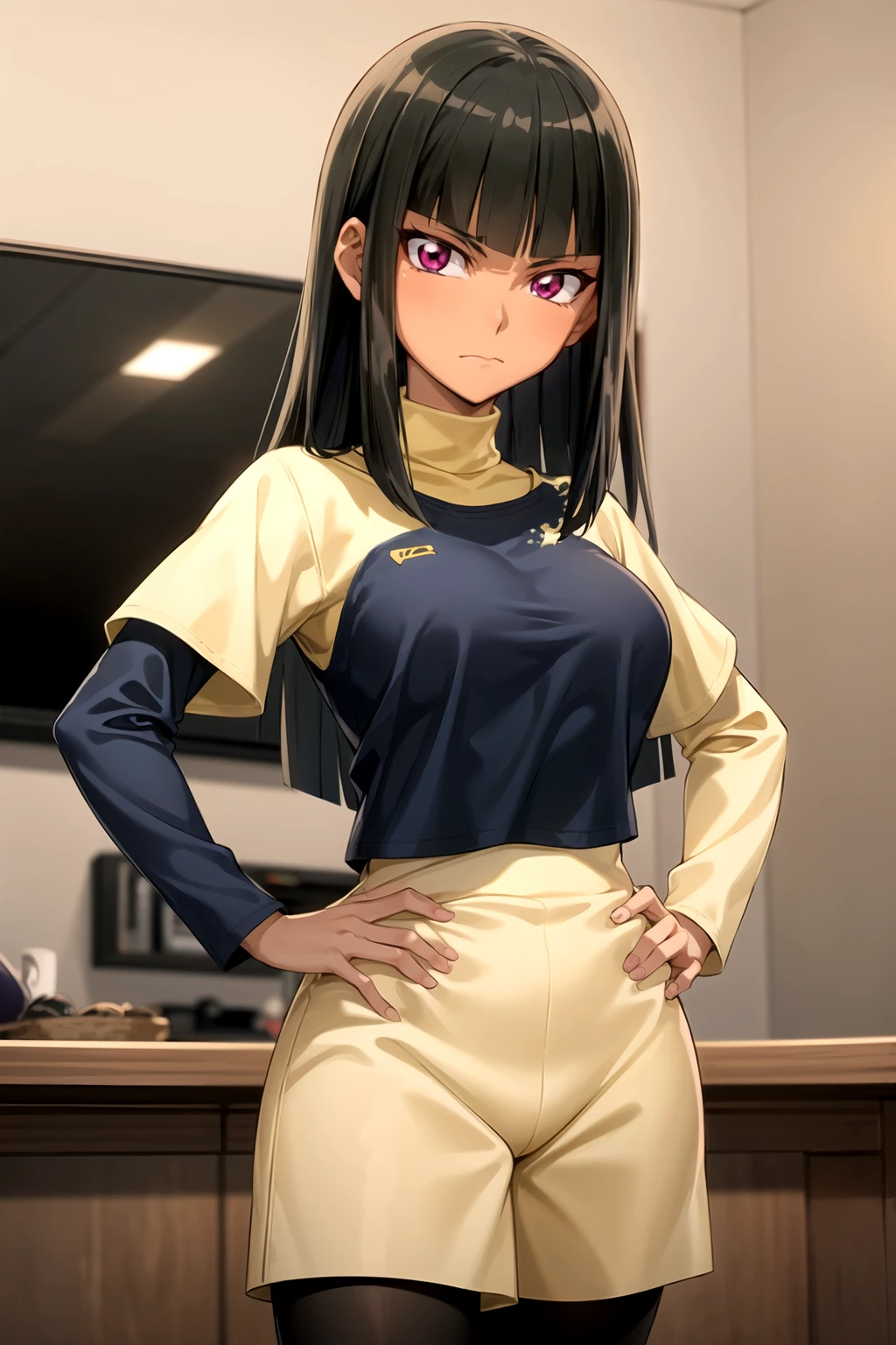 Activation Tag: masumi kotsu. Use along with black hair, blunt bangs, red eyes (or purple eyes), long hair, dark skin, and dark-skinned female