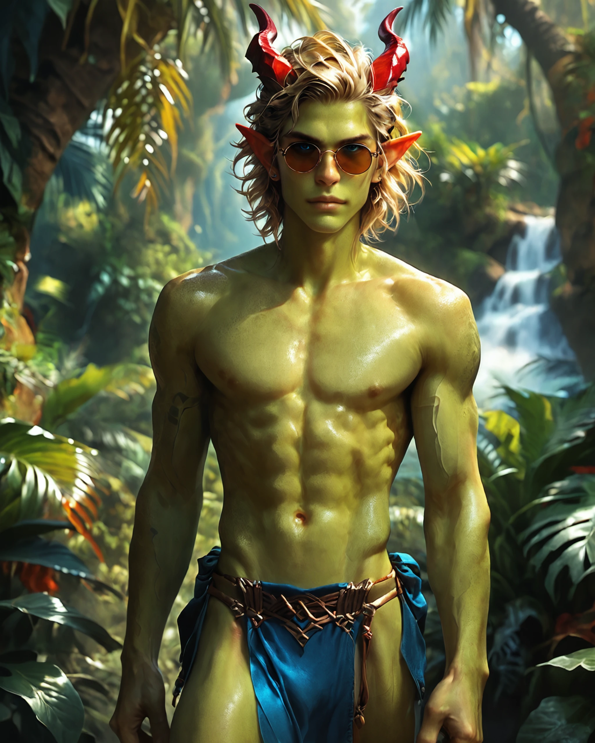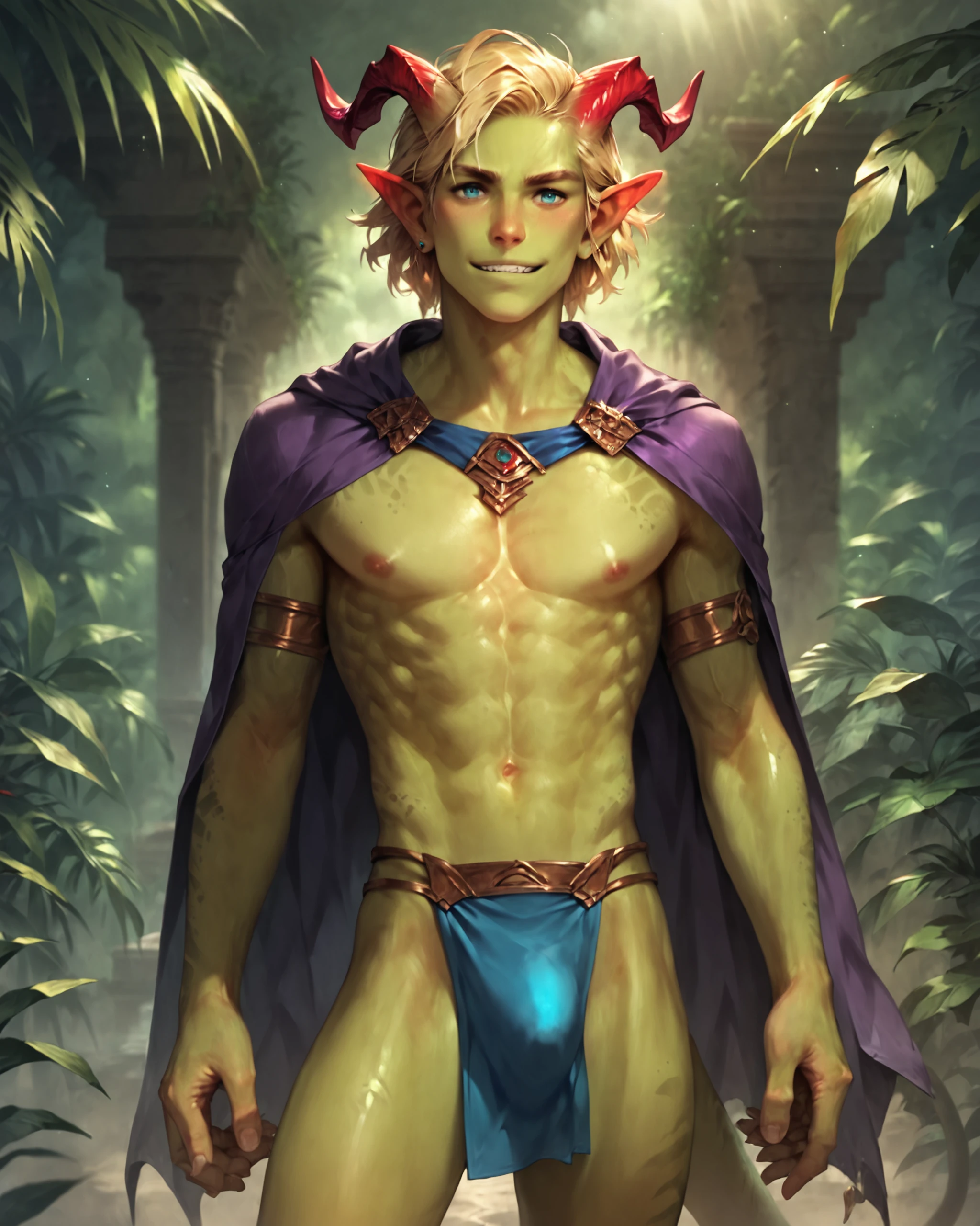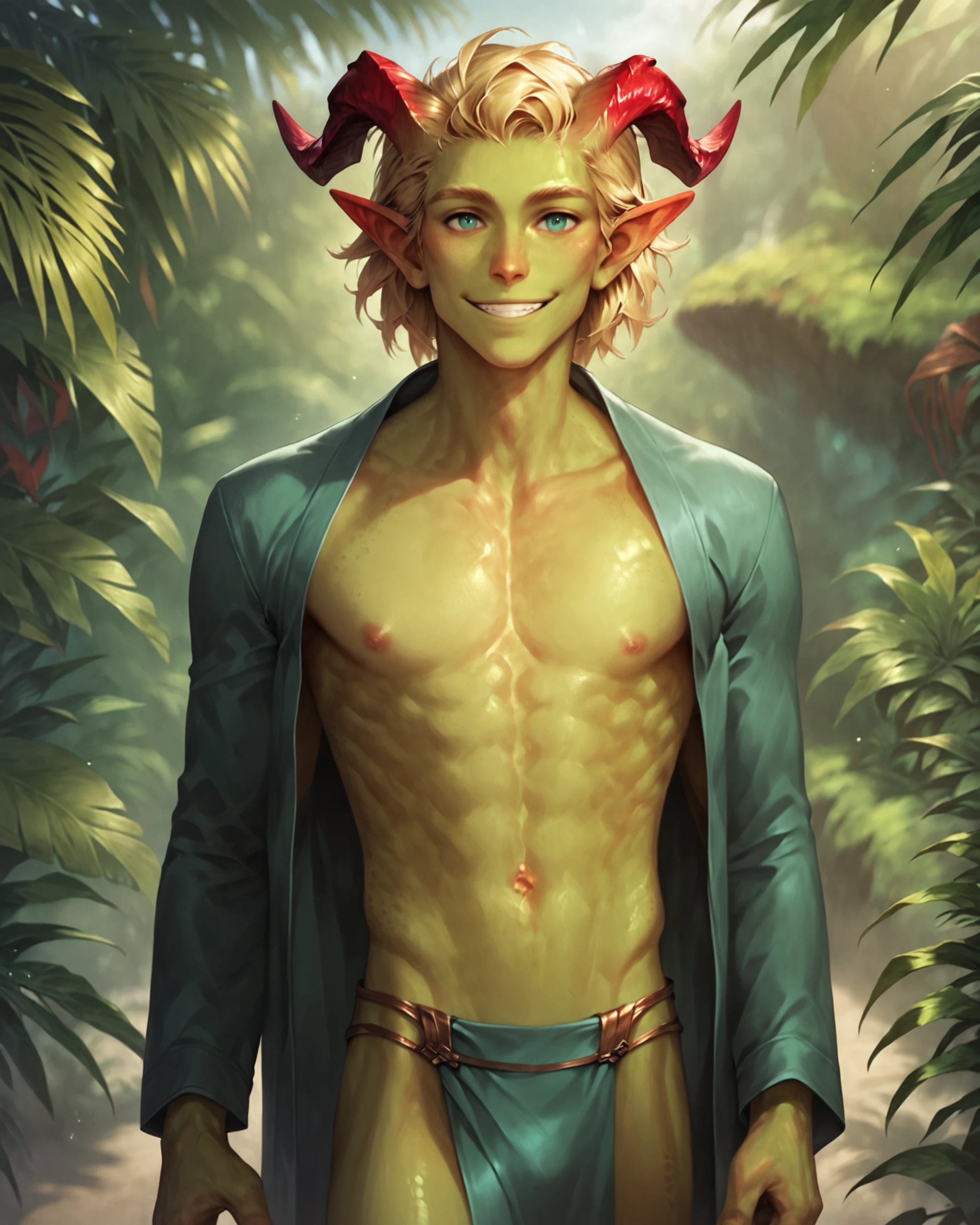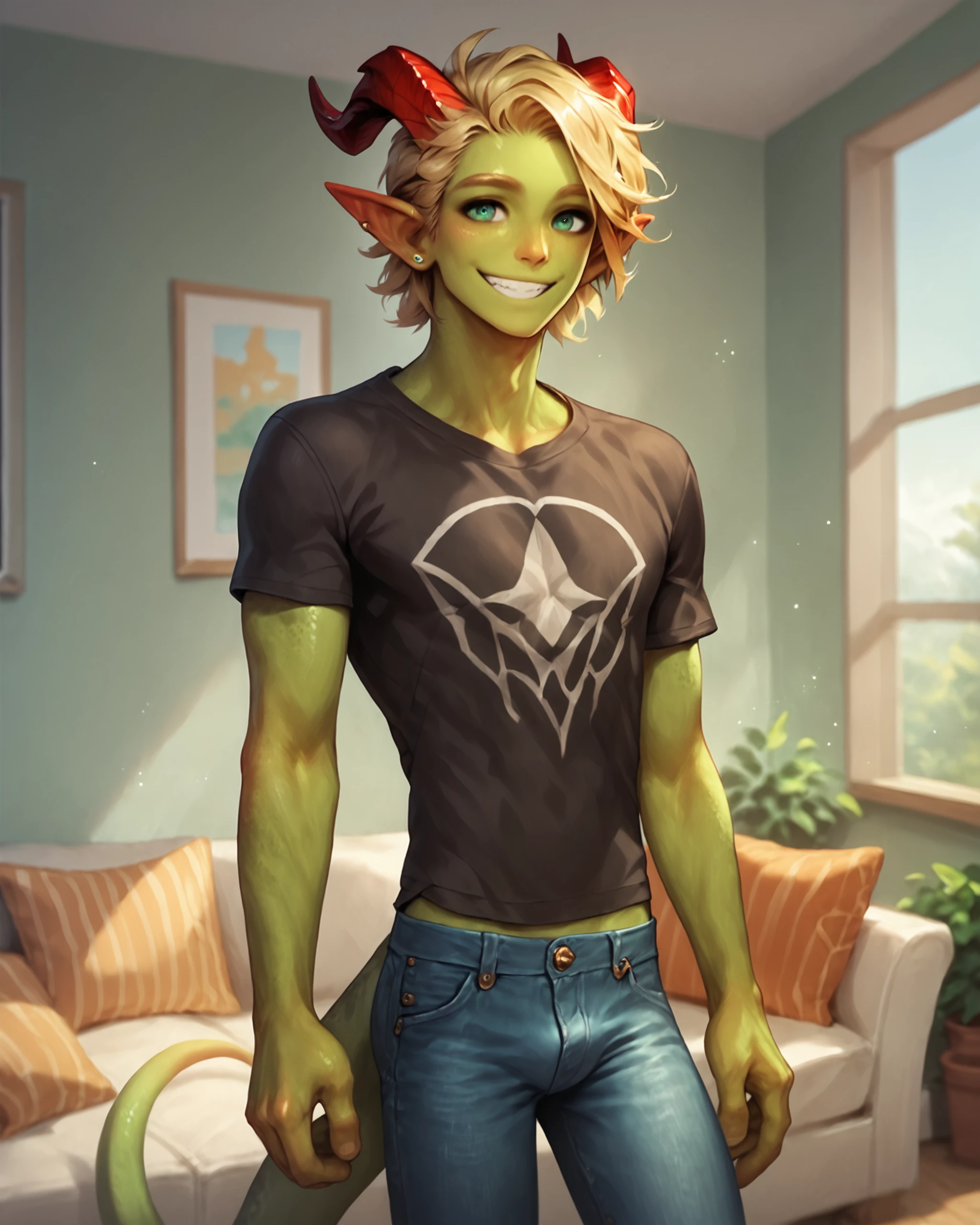 Additional Triggers to enforce his colors and details: green skin, red horns, tail