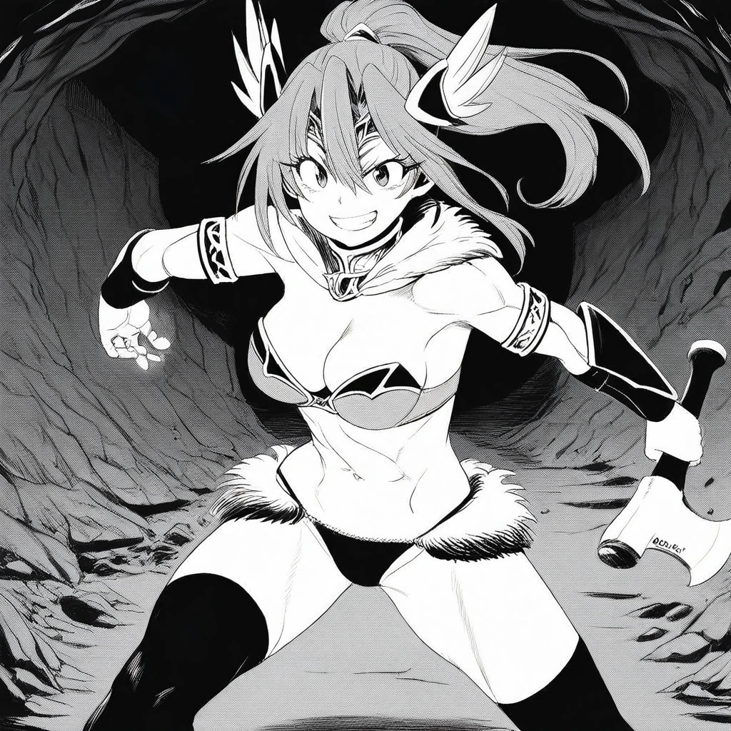 Ponytail, Forehead Tiara, Feathered Tiara Head gear, Fur Trim Neck Collar, Strapless Bra, Arm Guards, Armlet, Black Thong, Fur Trimmed Thong, Black Thighhighs