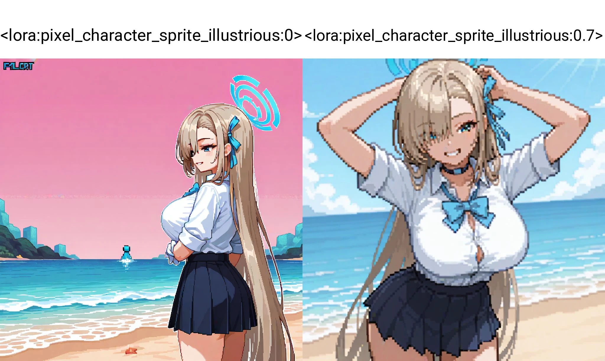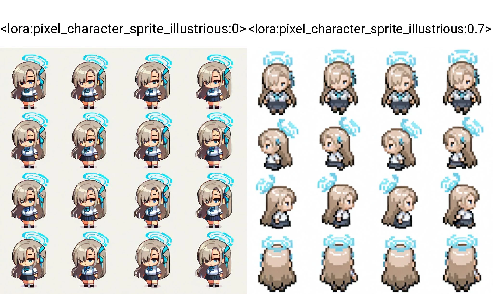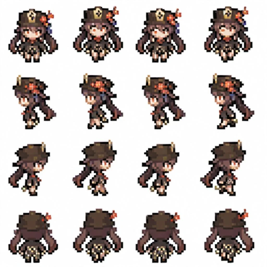 pixel_character_sprite, pxlchrctrsprt, sprite, sprite sheet, sprite art, pixel, (pixel art:1.5), retro game, retro, vibrant colors, pixelated, multiple views, concept art, (chibi:1.5), from side, looking away, from behind, back, white background, <lora:pixel_character_sprite_illustrious:0.7>Description