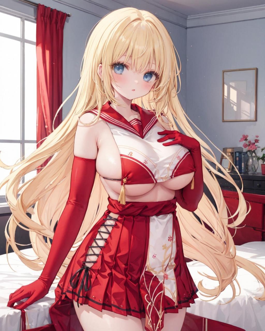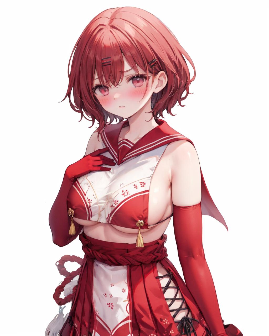 Addition: elbow gloves, red gloves, shimenawa, rope,