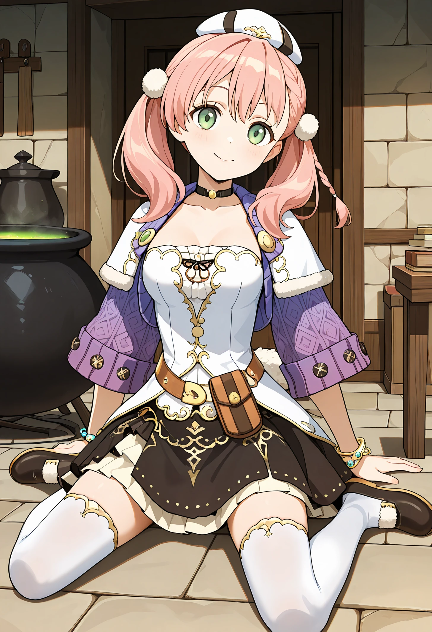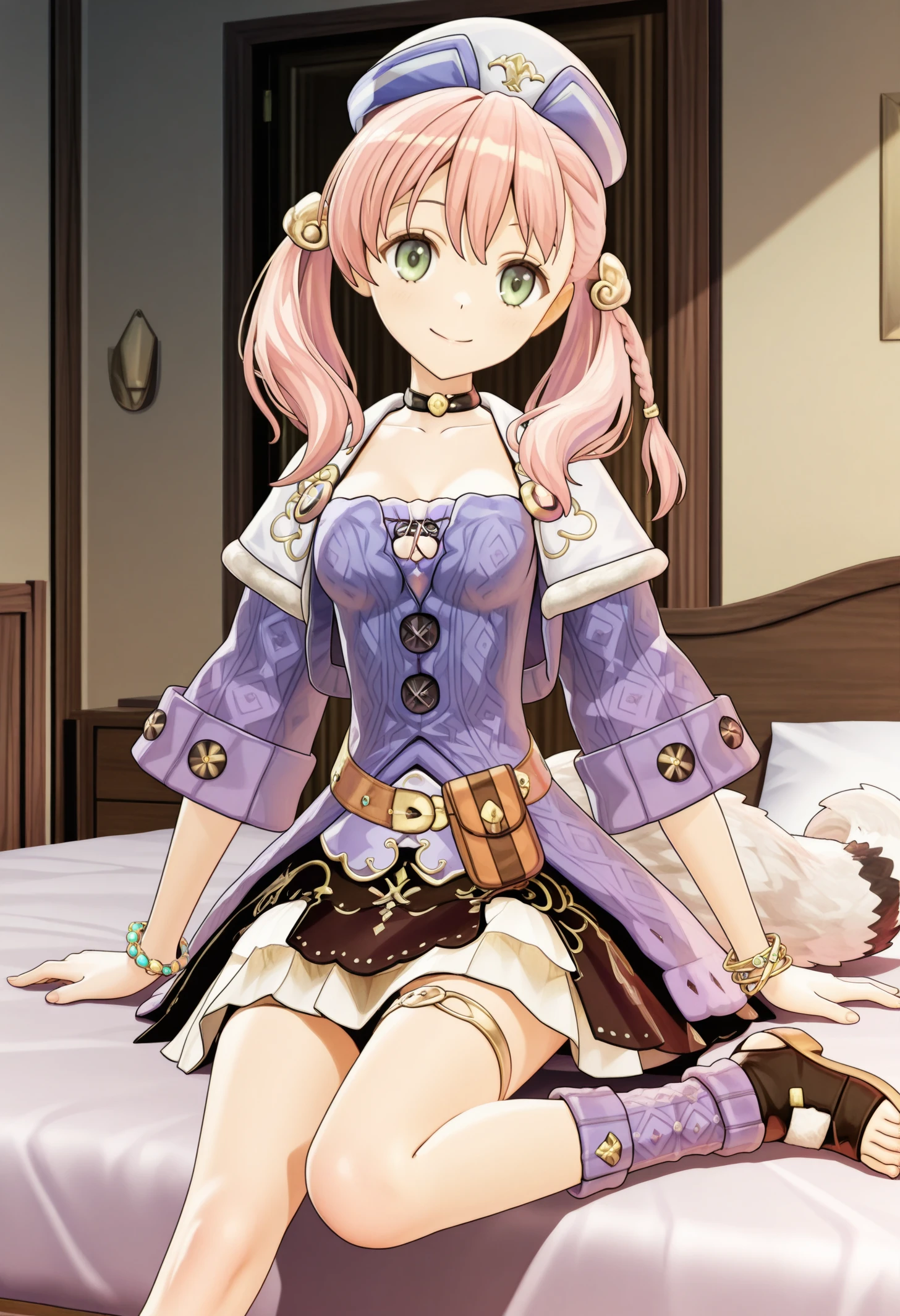 eschaa16, purple topwear, a16 outfit, beret, gold hair ornament, belt, jacket, white skirt, tail, purple legwear, black choker, bracelet, toeless footwear, thigh strap,