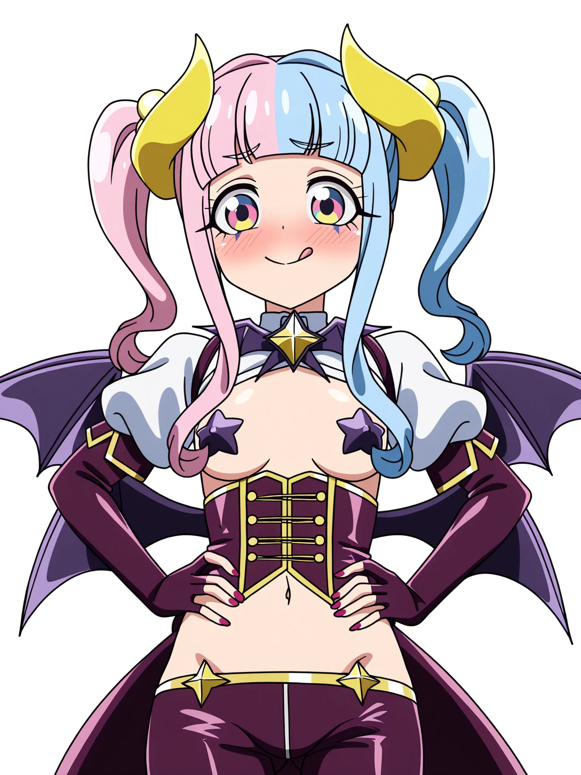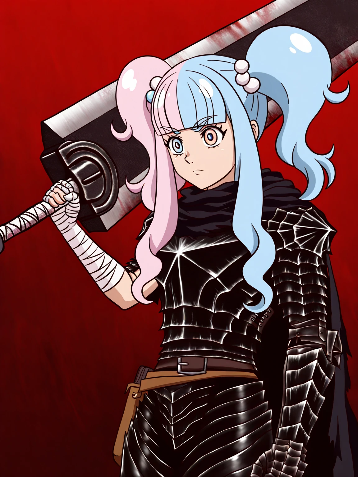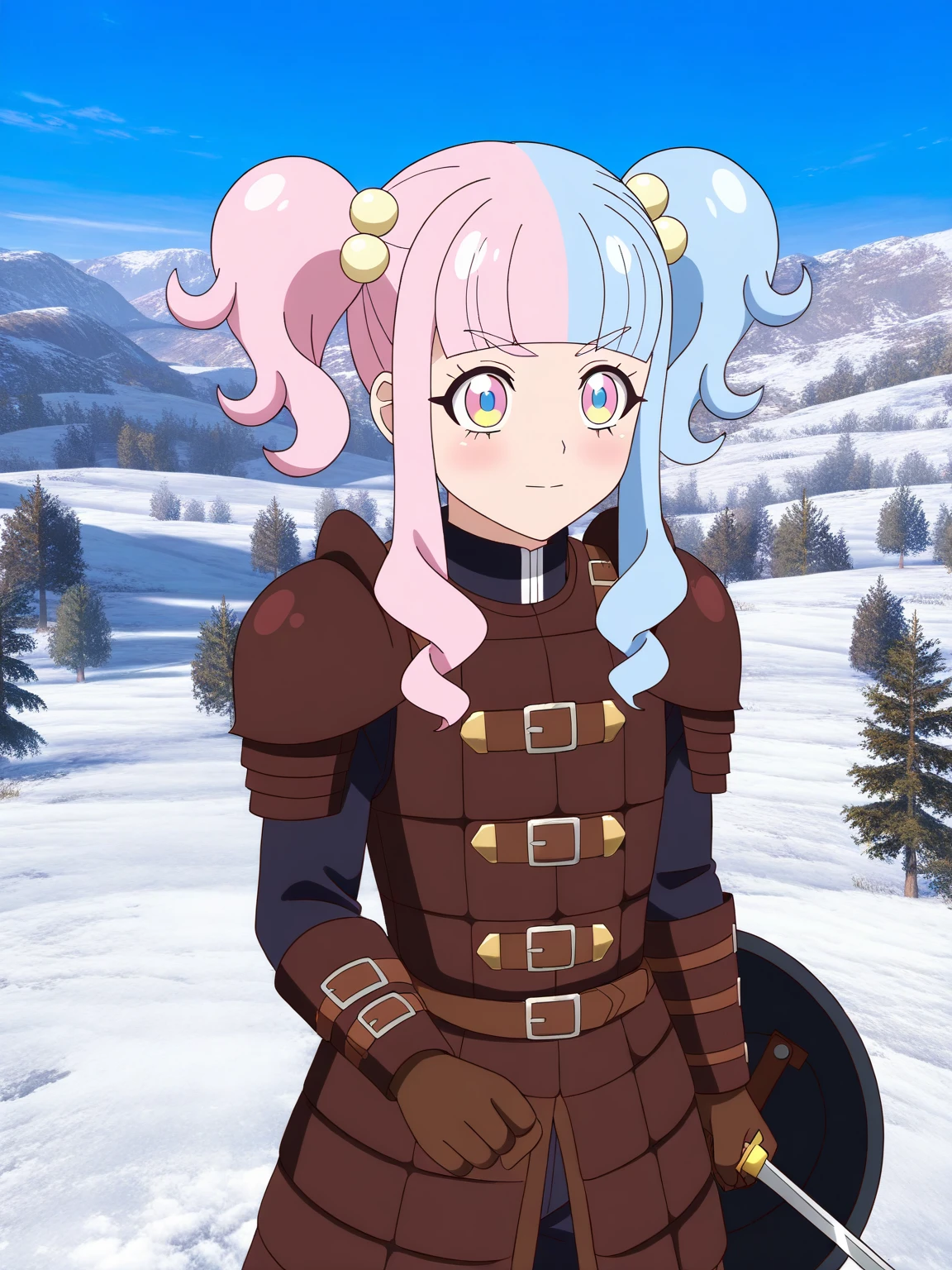chaimu,twintails,long hair,sidelocks,hair ornament,blunt bangs,bangs, (multicolored hair),pink hair,blue hair, bow,hair bobbles,(multicolored eyes,pink eyes,blue eyes;1.2),