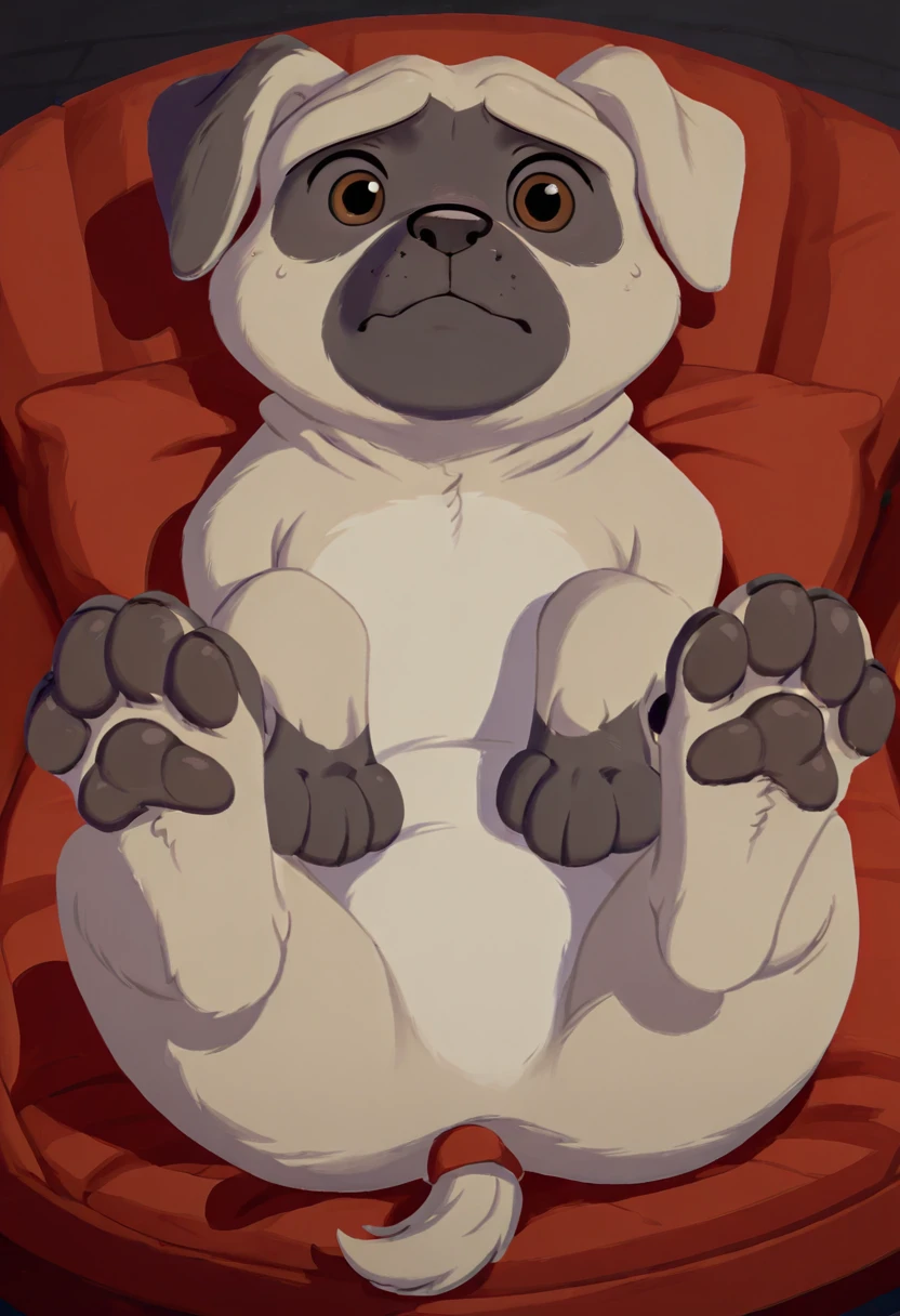 Monroe, pug, feral, two tone fur, brown eyes, no sclera,