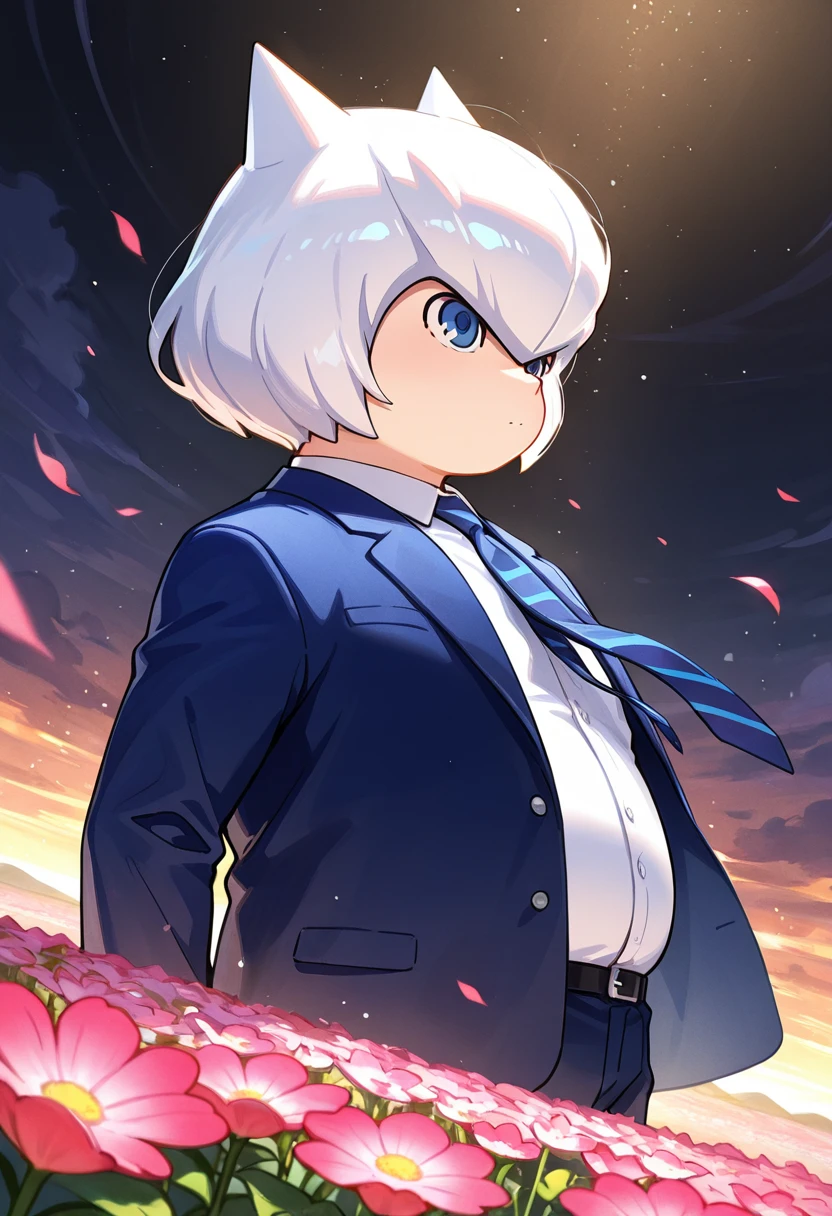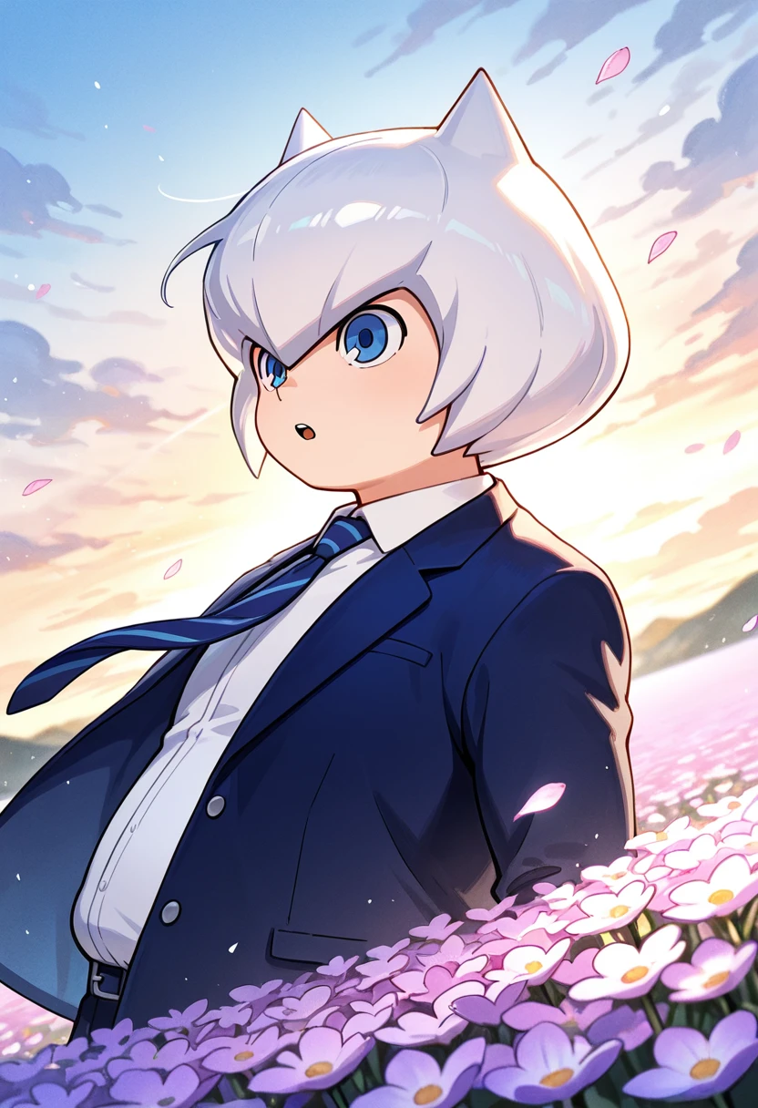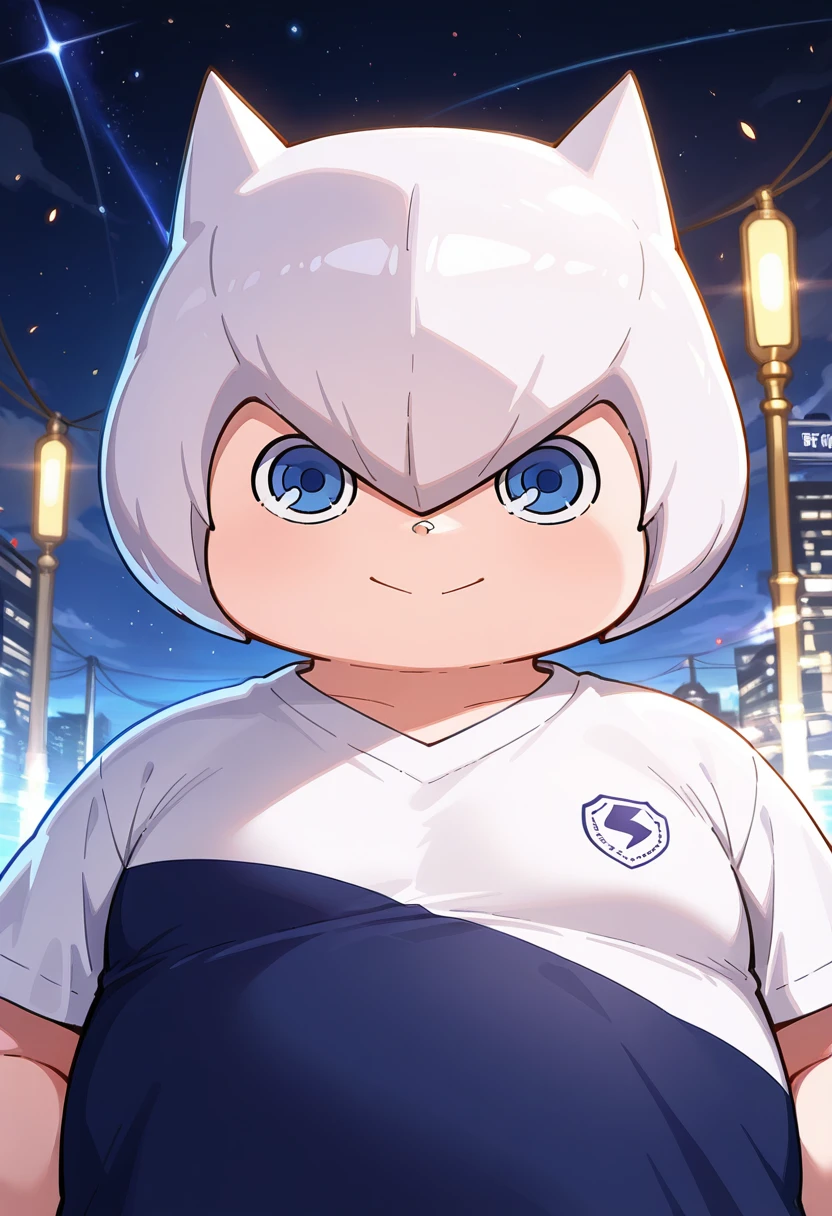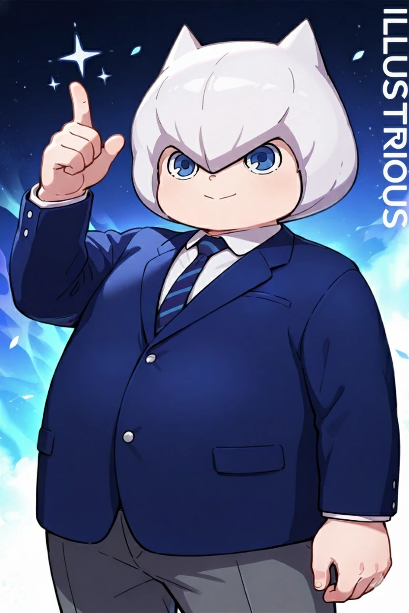 kelvin_steelborne_(inazuma_eleven_victory_road), 1boy, hair_horns, white hair, plump, blue eyes