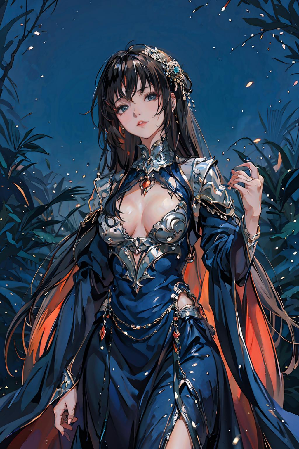 This is a lora with a style of painting and clothing, with the style of a Western game female character's costume, and the texture of the clothes is good.