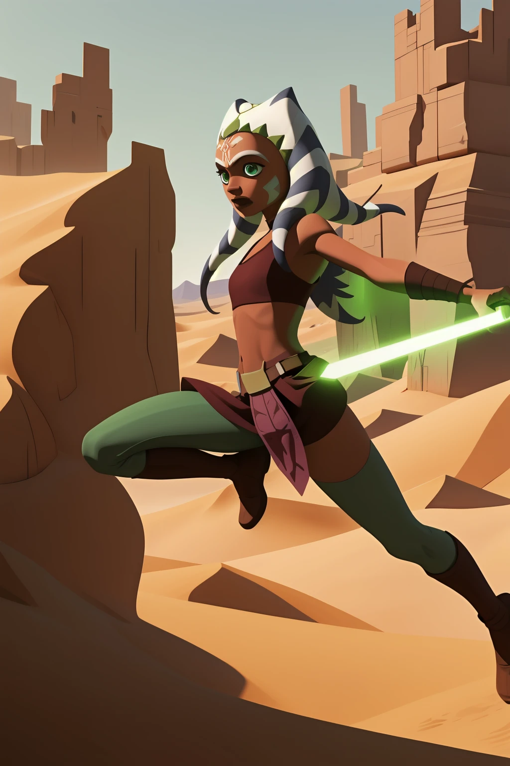 ~early padawan clothes (ahsoka_padawan_early) (1-2 season, but it doesn't work at all. If you add prompts like "tube top, white stockings" you might get something, but the result is still disgusting)