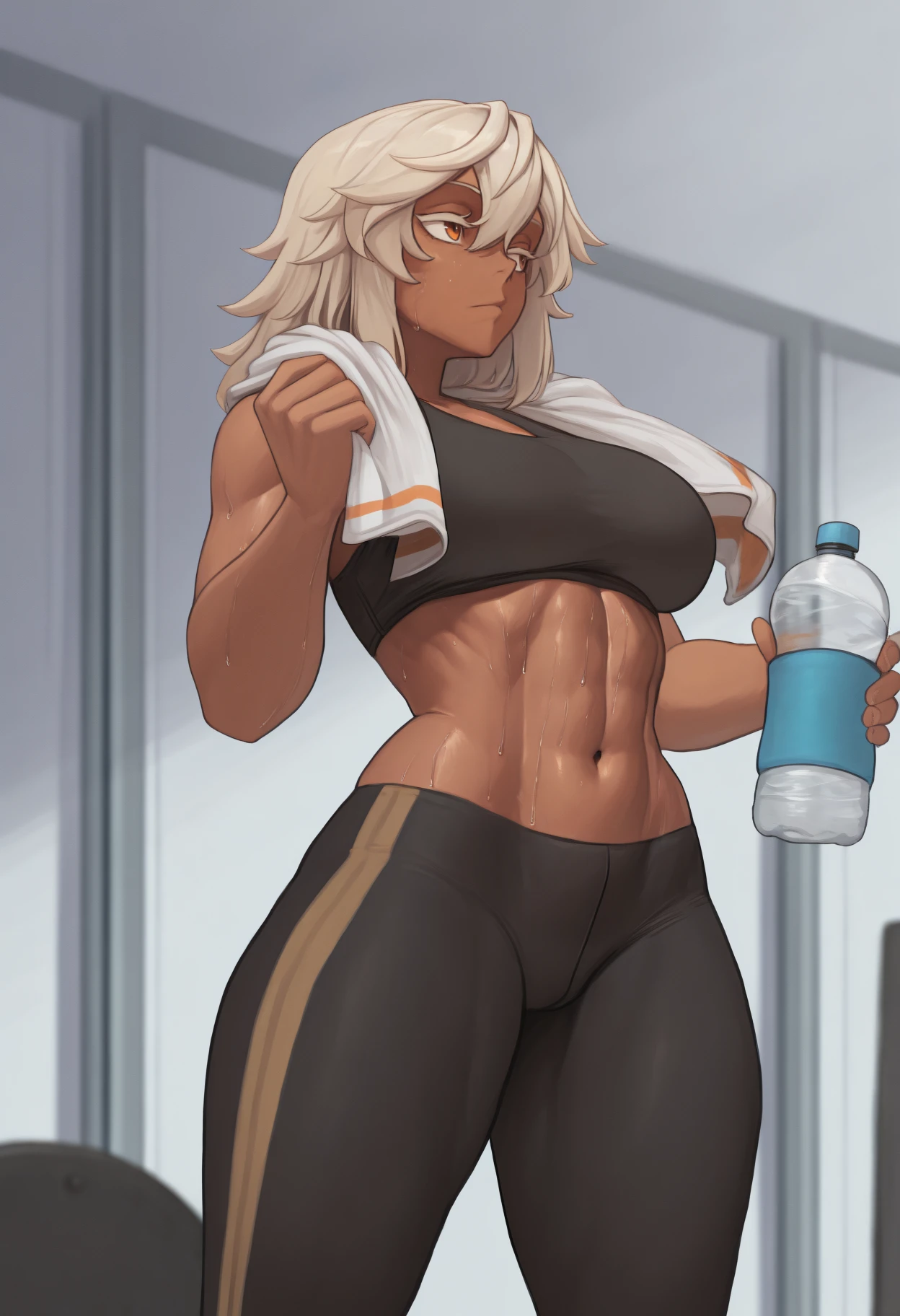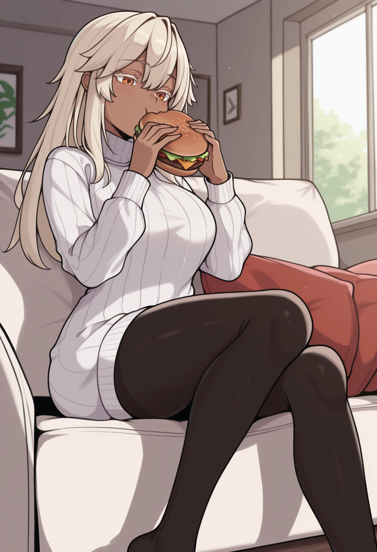 rmlthlvltne, dark-skinned female, long hair, blonde hair, orange eyes, colored eyelashes
