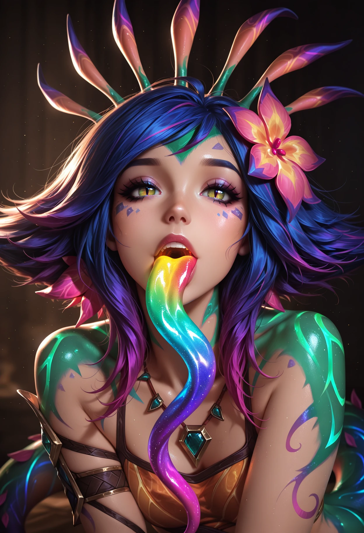 Also, many of the images had multiple of the tags above, so sometimes you may get more than one feature when you bring in another—such as sharp teeth or fangs—just throw it in the negative prompting to leave it out if this happens.