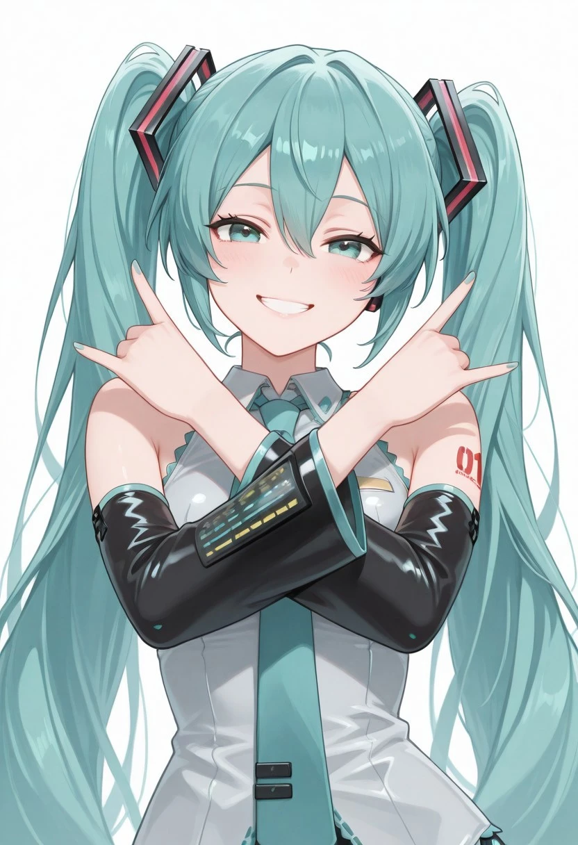 Sometimes you can achieve this similar pose by tagging with "crossed arms, double \m/" without using this model, so don't use this model right away unless you use it for force.