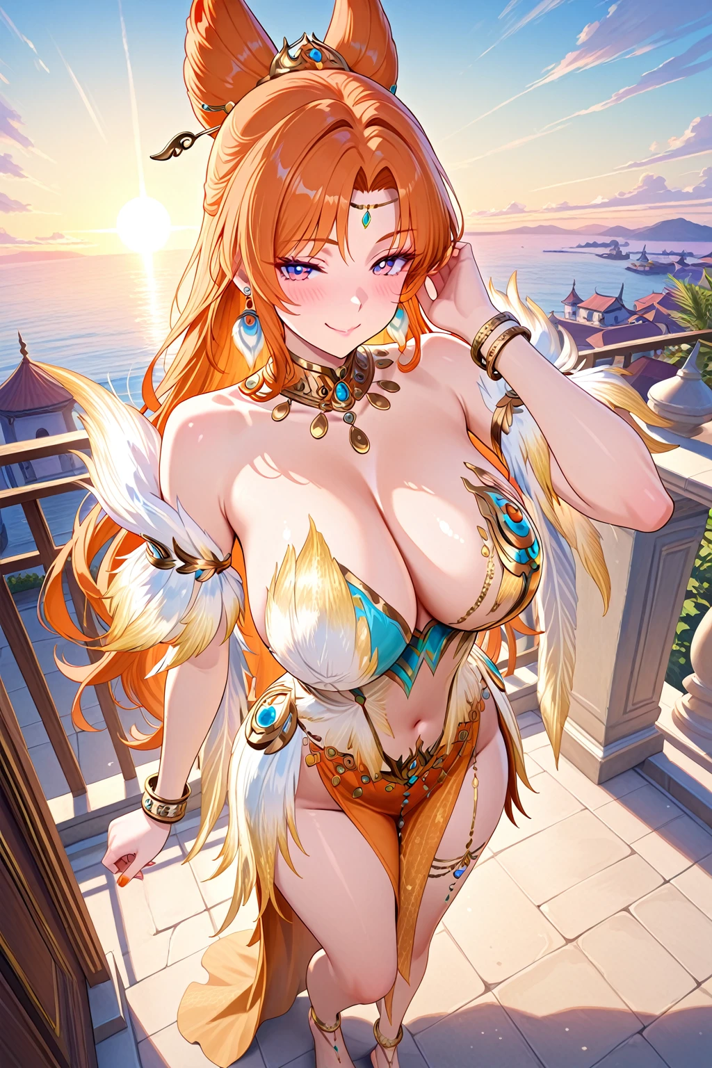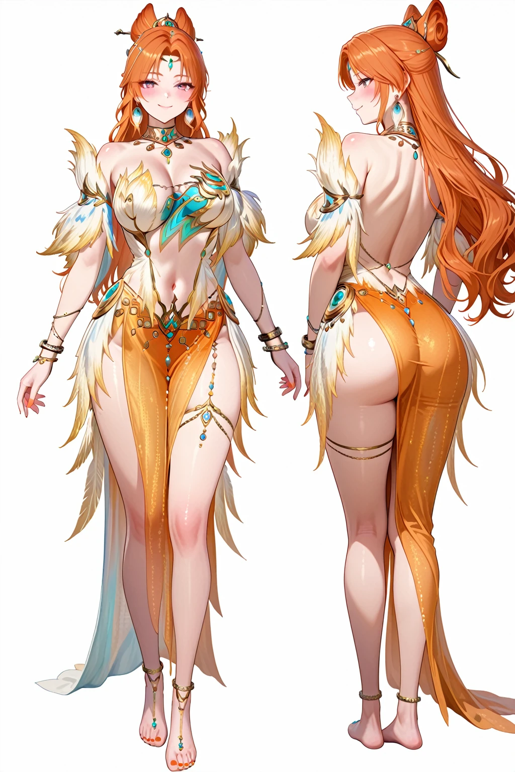 13878w,thigh-,thigh chain garter,necklace,jewelry,feather trim,earrings,dress,detached sleeves,bracelet,barefoot, shoulders,anklet,