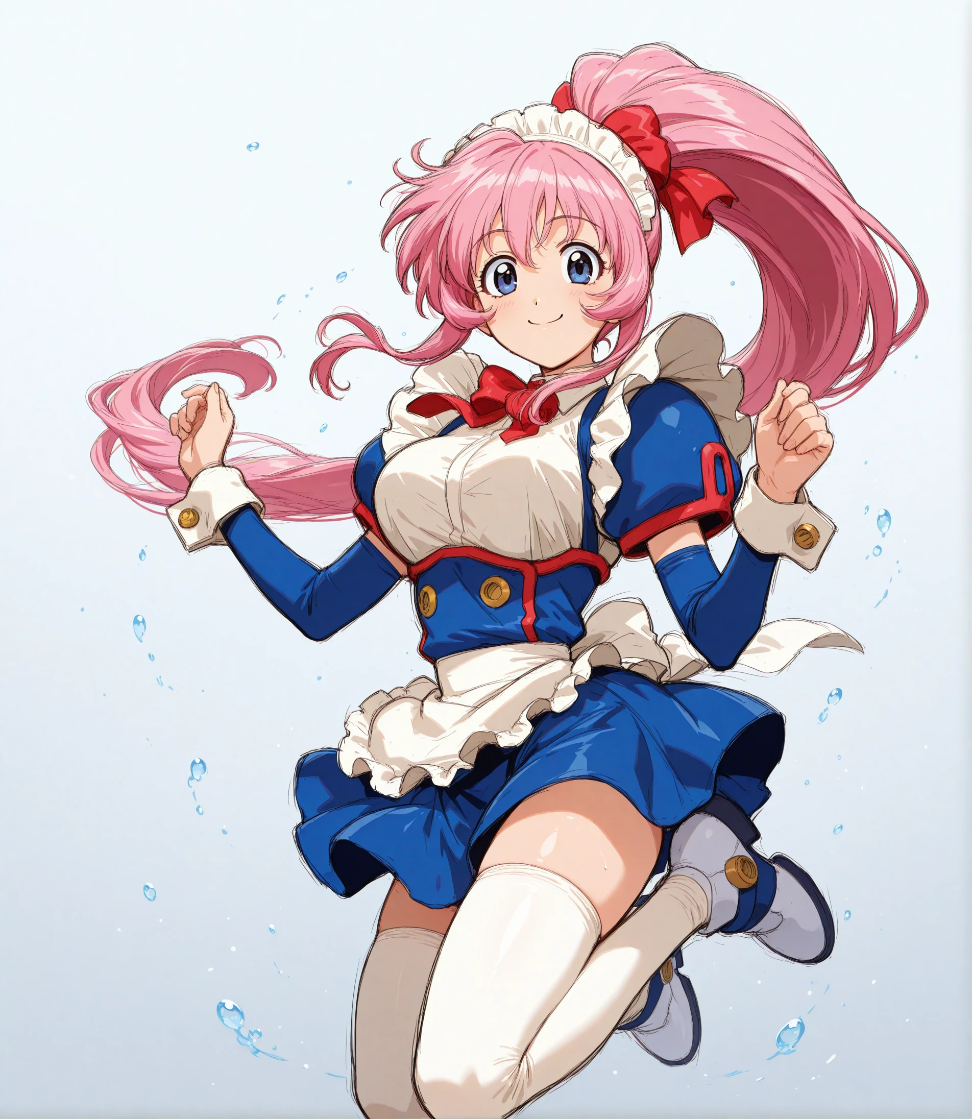 koutetsu_tenshi_kurumi,Steel_Angel_Kurumi,pink_hair,very_long_hair,maid, maid_headdress, white_thighhighs,ponytail,detailed face, large_breasts,