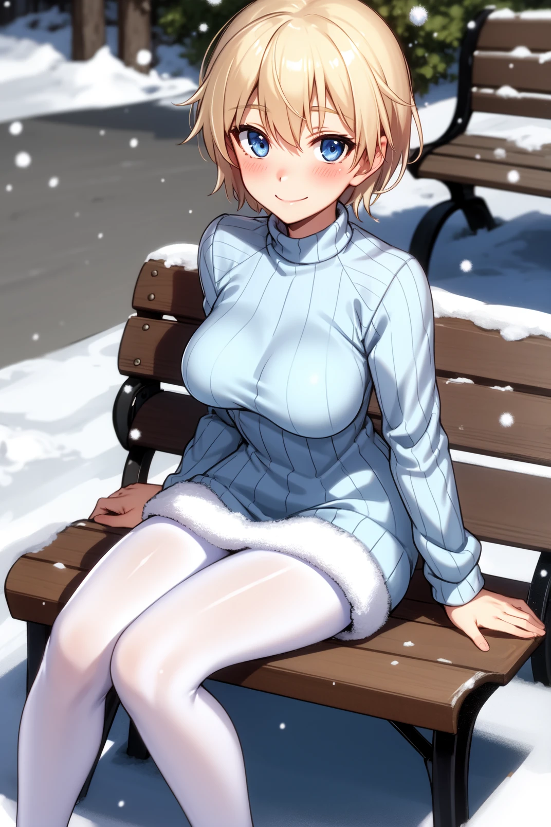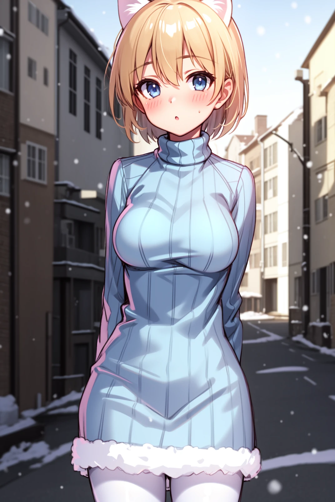outfit: ribbed sweater, turtleneck, long sleeves, white pantyhose, sweater dress