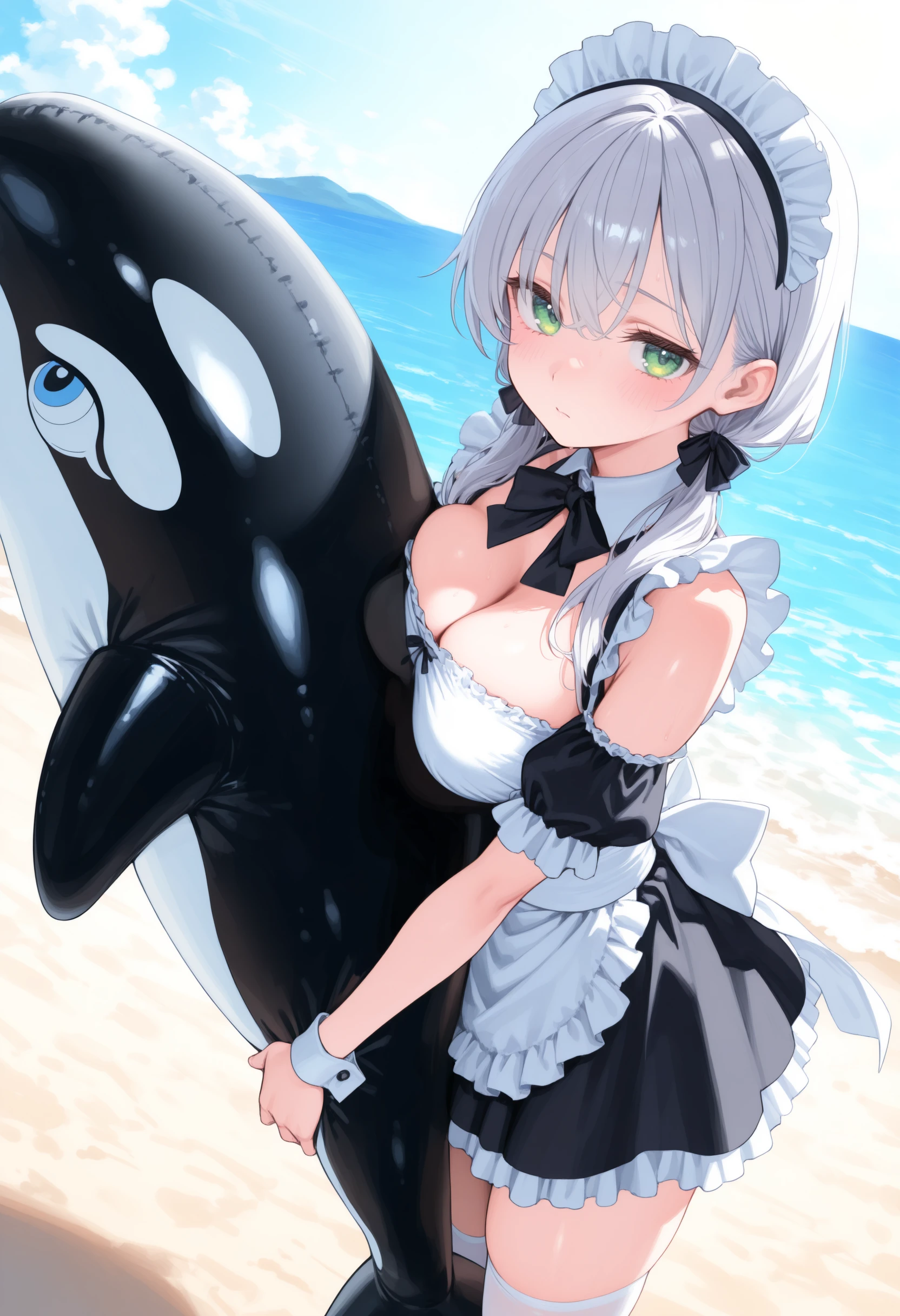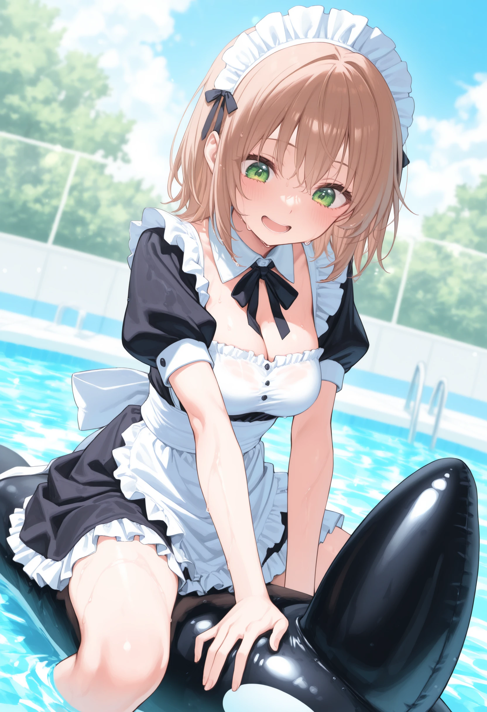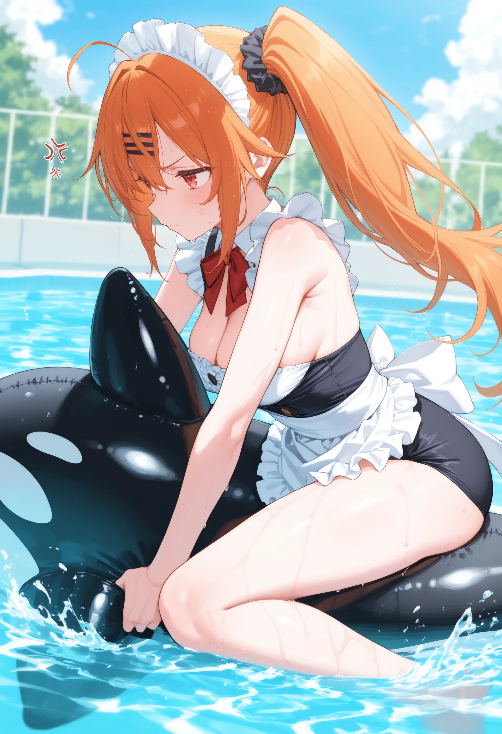LoRA riding on a cheap but incredibly large orca-shaped float, which is often seen in the sea and pools these days. The Illustrious series is already trained, but it stabilizes the shape, including the distinctive eyes.
