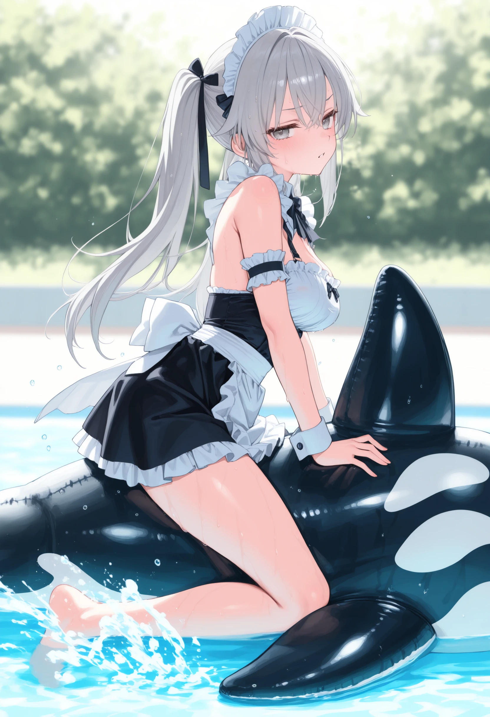 昨今の海やプールでよく見かける安いのにめちゃくちゃデカイシャチ型のフロートに乗るLoRAです。Illustrious系は元から学習してますが特徴的な目を含めて造形を??させます。