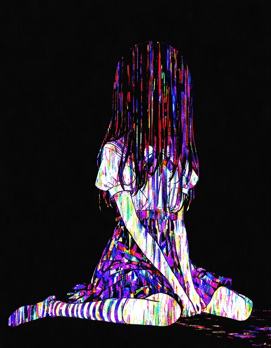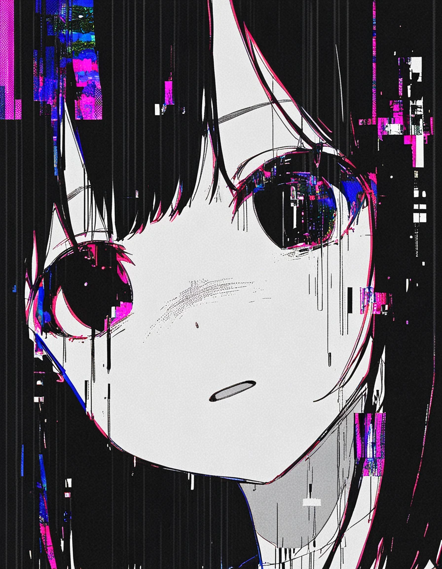 1girl, solo, abstract, glitch, error