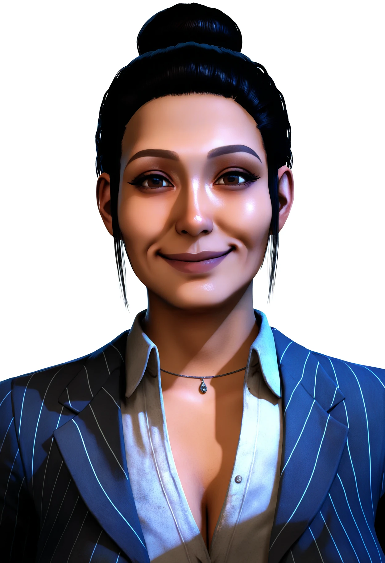 1girl, janeromero, black hair, single hair bun, brown eyes, dark skin, mature female
