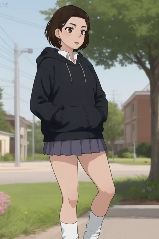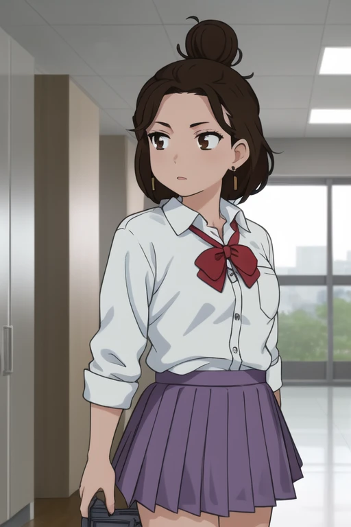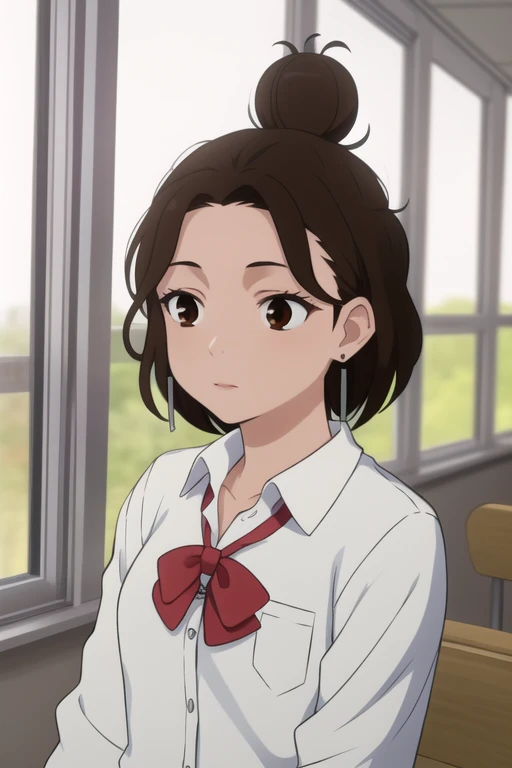 Trigger Words: miko (dandadan), short hair, brown hair, brown eyes, hair bun, single hair bun