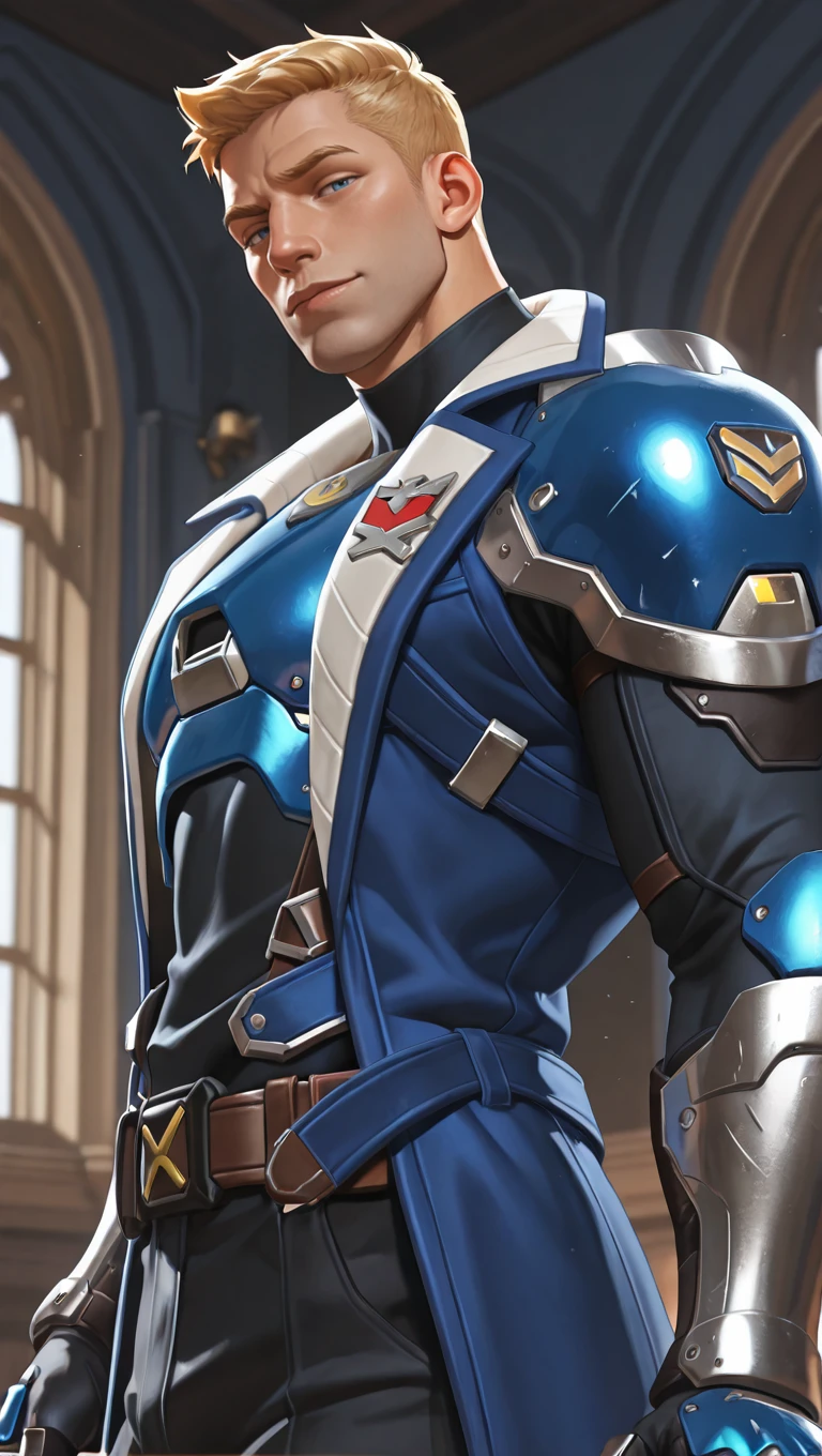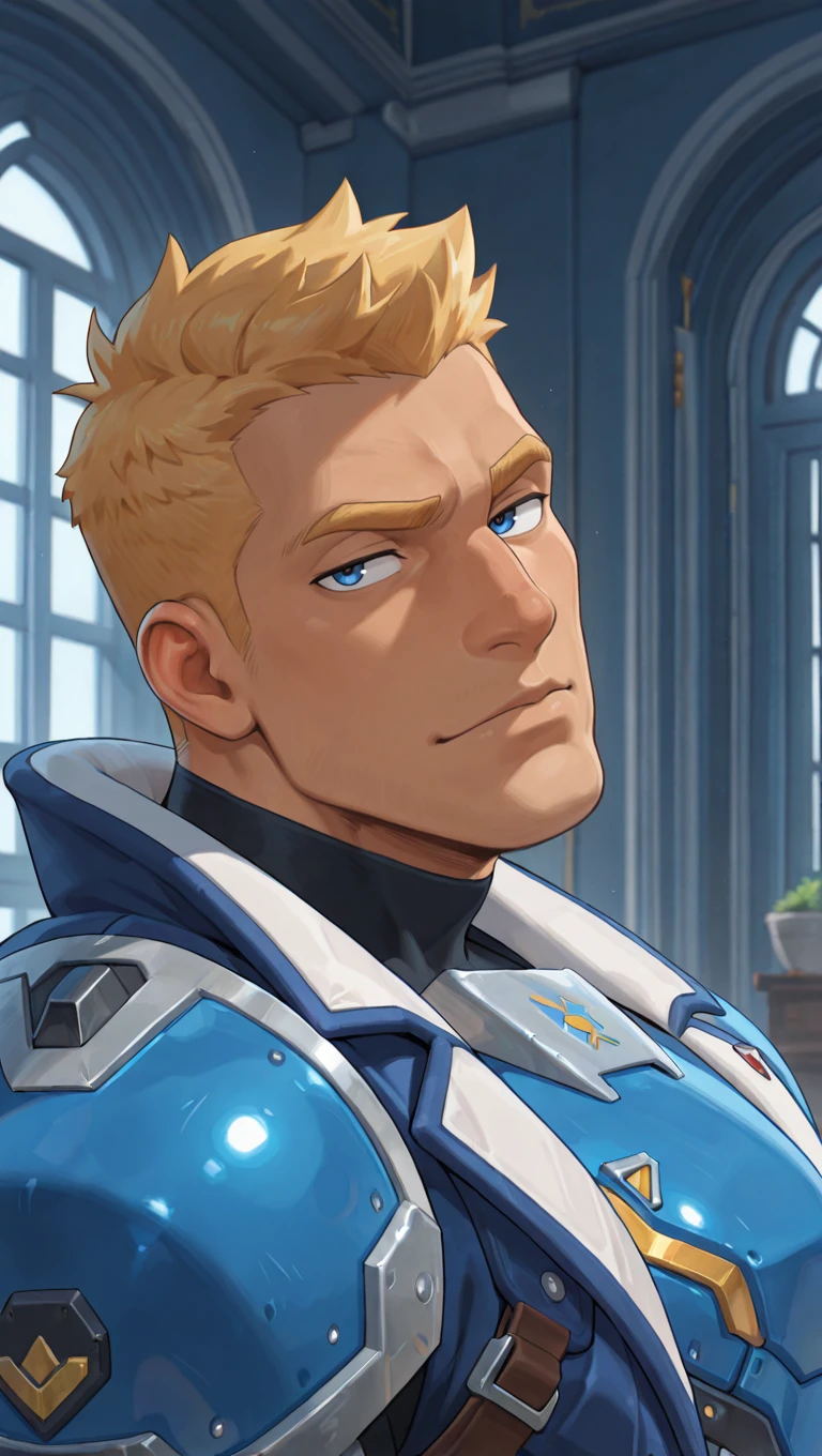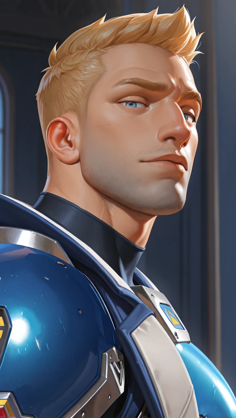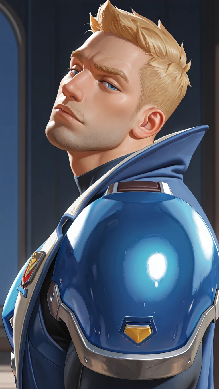 jackm,1boy,mature male, blonde hair, very short hair, blue eyesV3 outfit tags are as follows:
