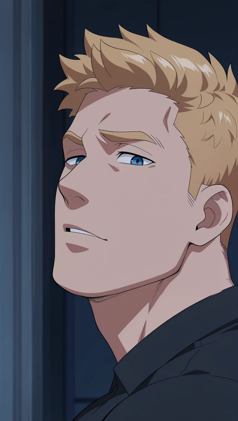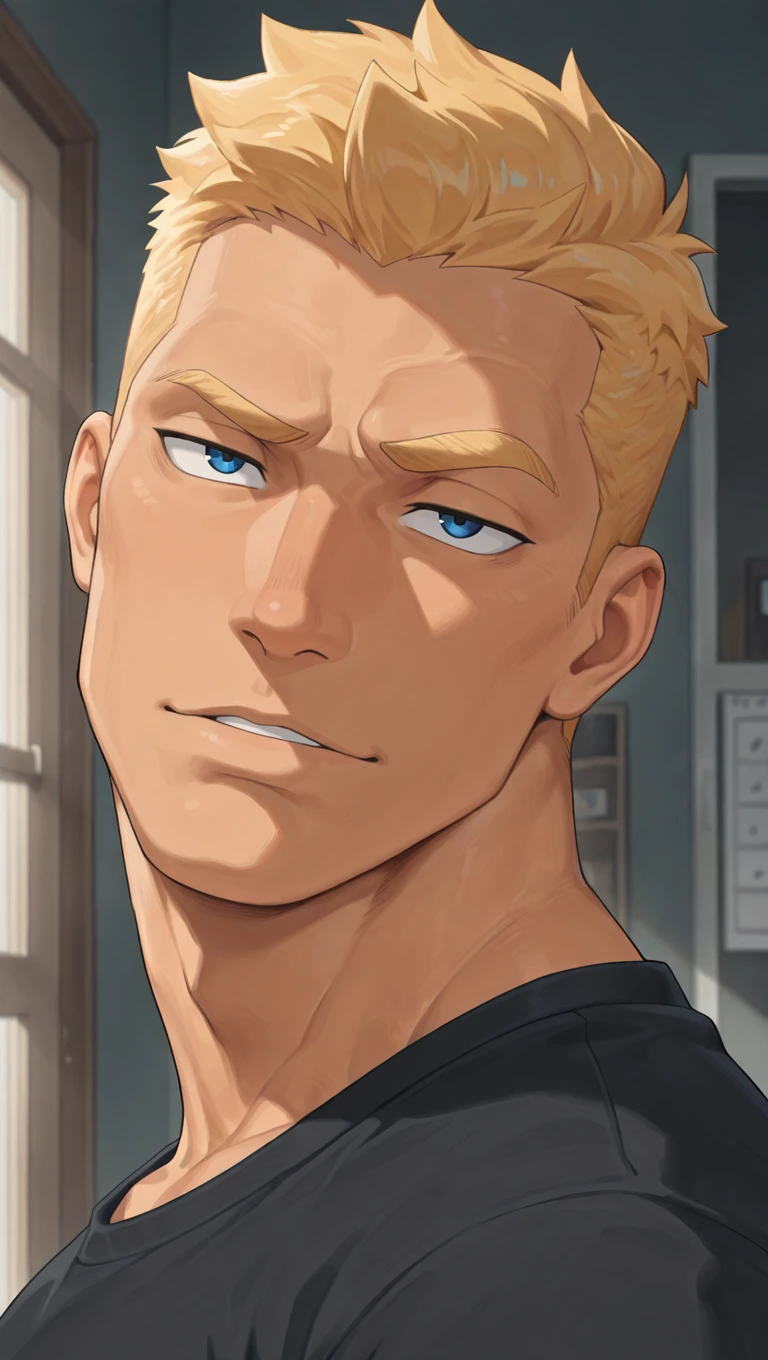 jackm,1boy,mature male, blonde hair, very short hair, blue eyes, stubbleV2 outfit tags are as follows: