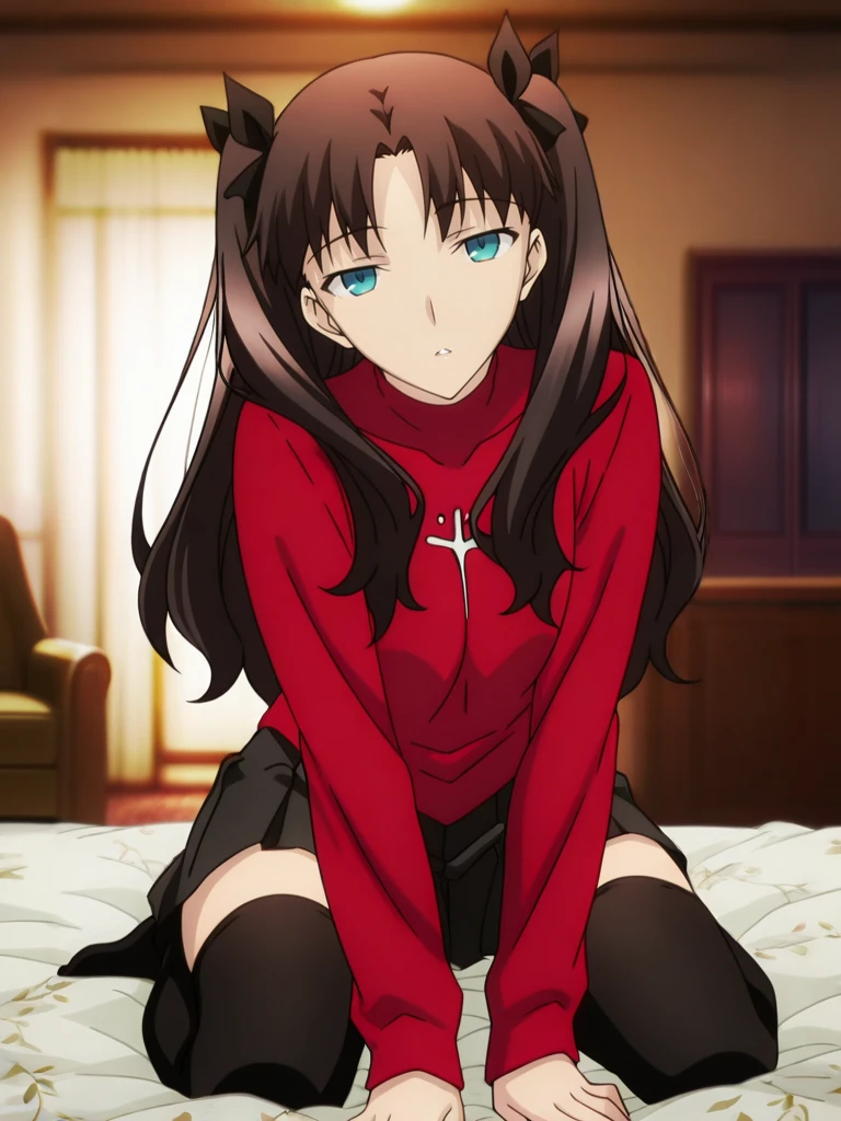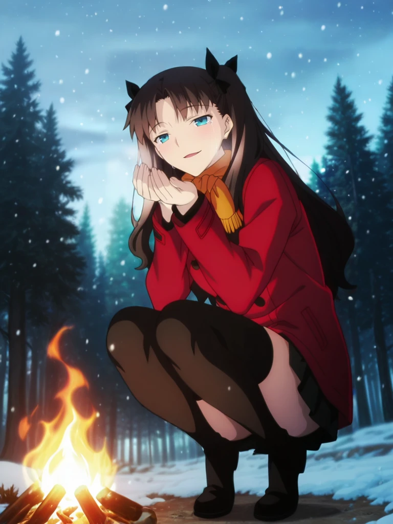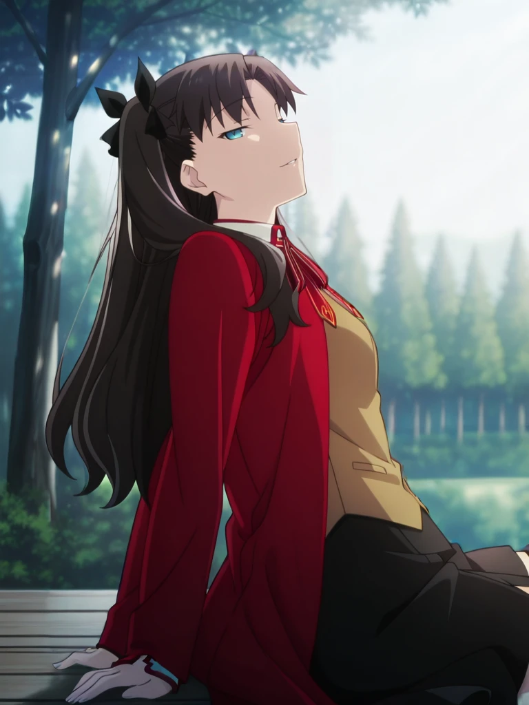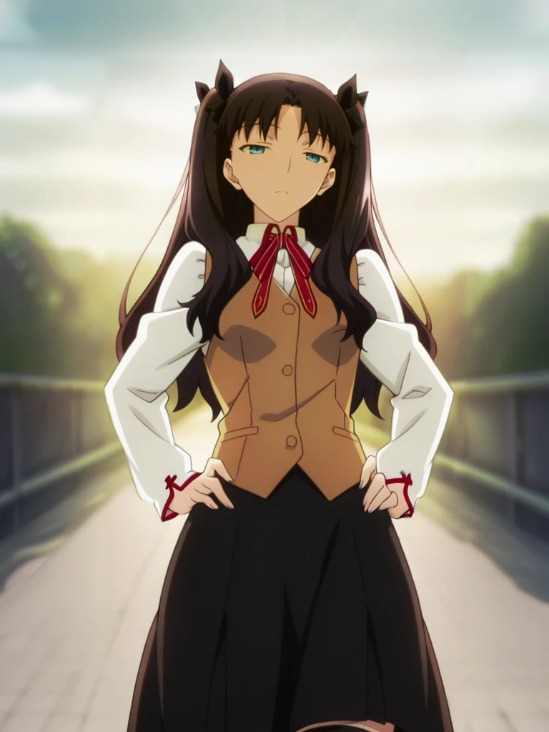 rinTohsaka,black hair, two side up, bangs, blue eyes, medium breasts, anime screenshot,
