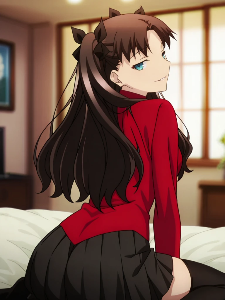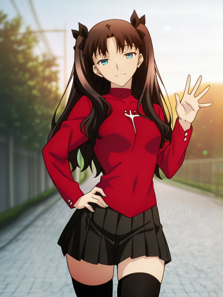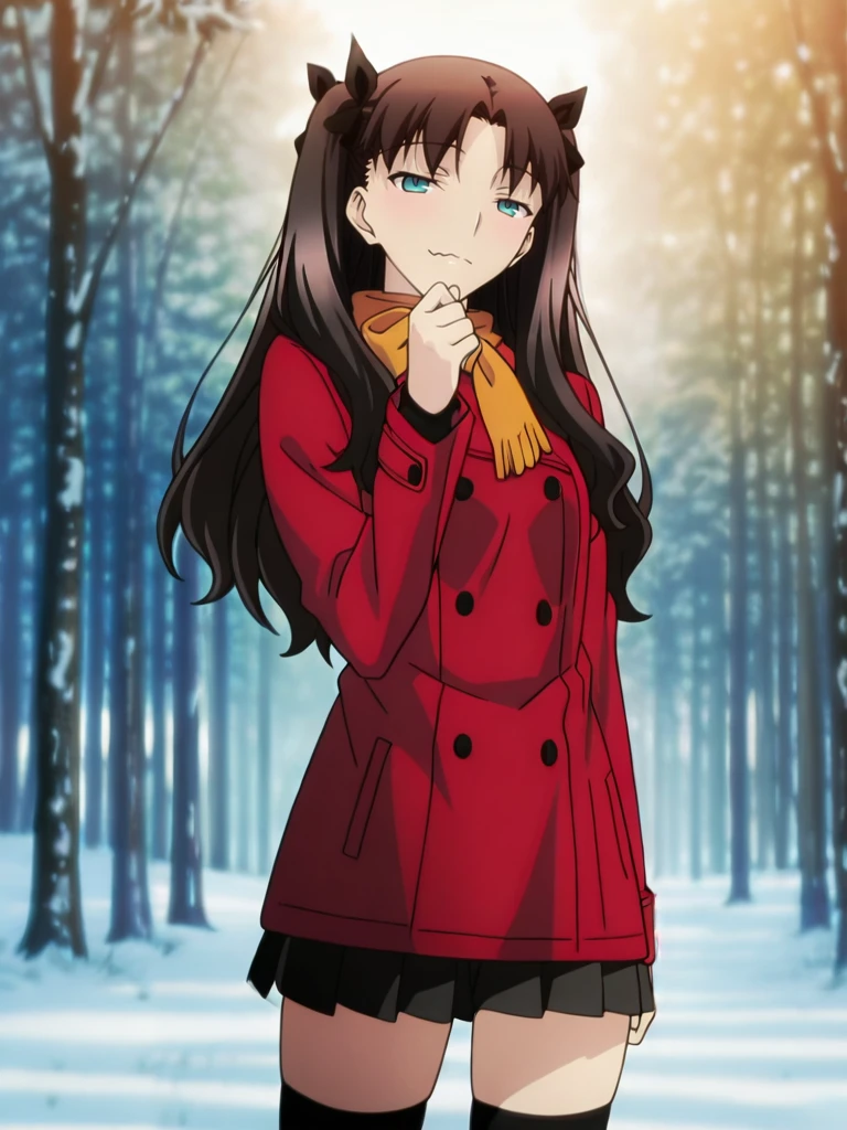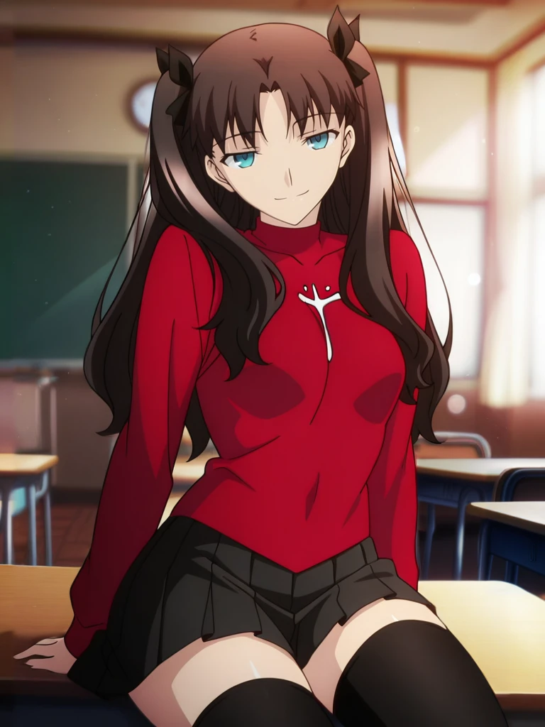 rinTohsaka,black hair, two side up, bangs, blue eyes, medium breasts, anime screenshot,