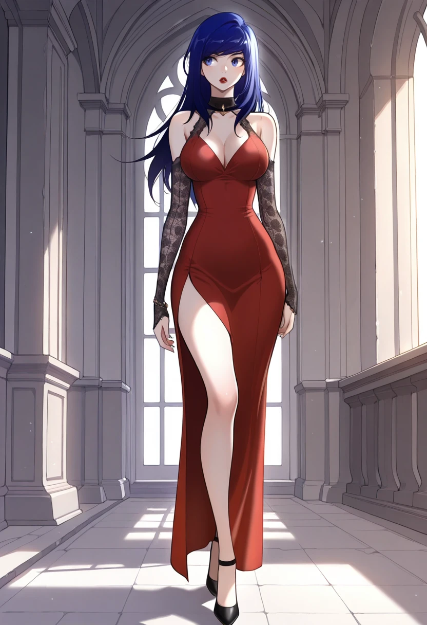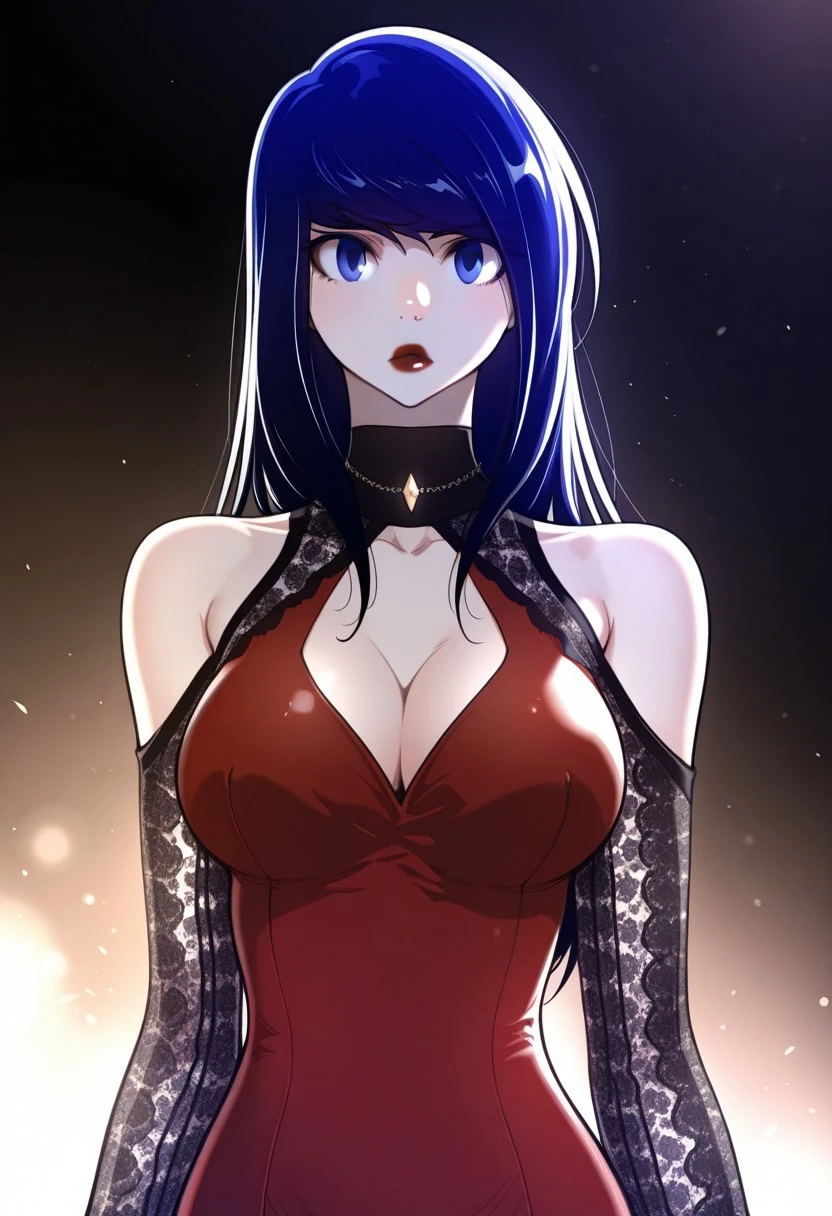 ahyoxl11, blue eyes, blue hair, long hair,swept bangs, lipstick, makeup, large breast,Outfit promt: