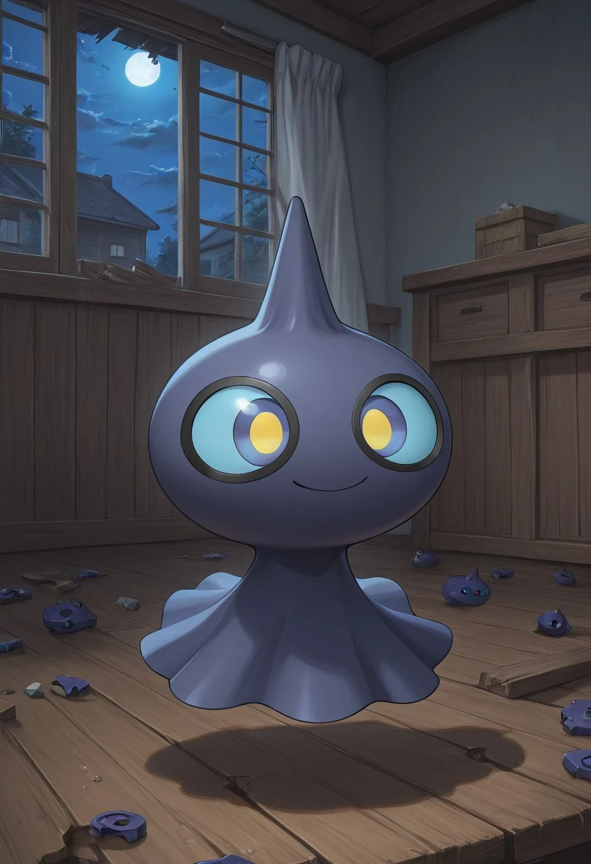 Shuppet_pkmn, gray skin, blue sclera, yellow eyes