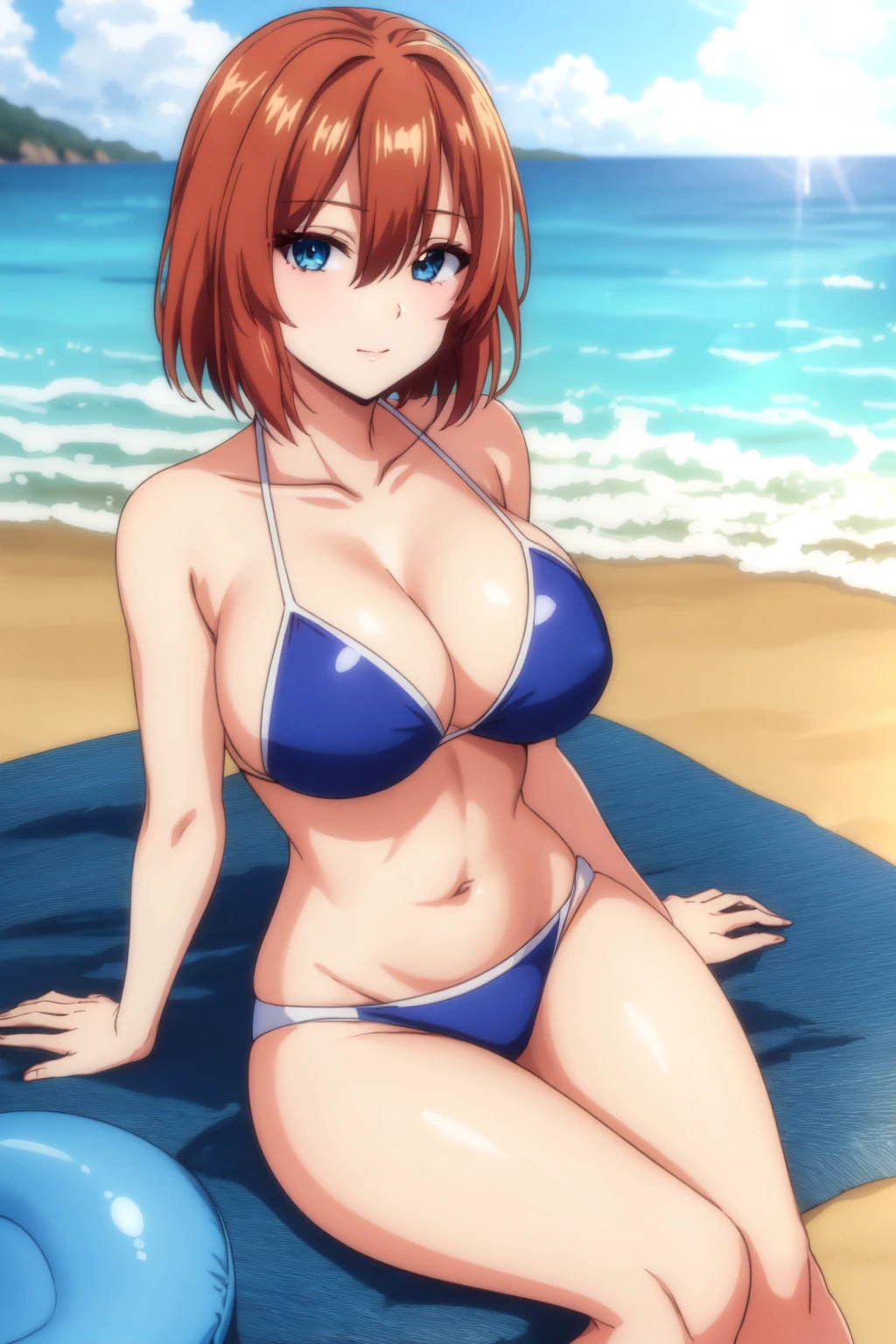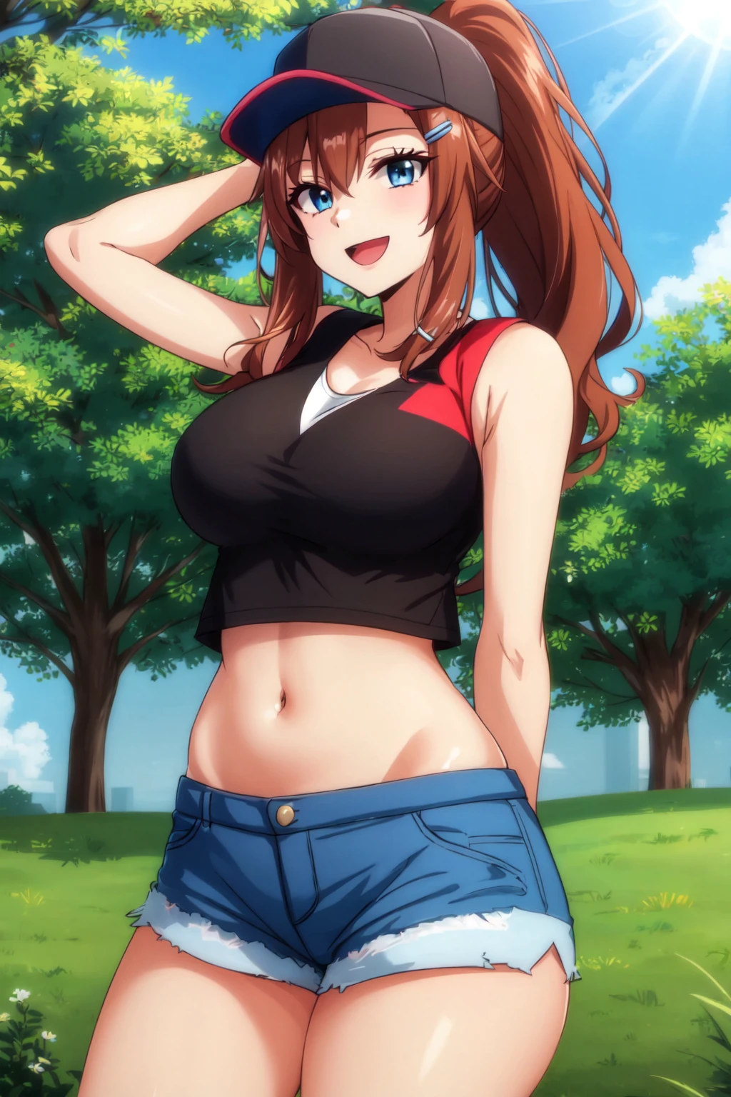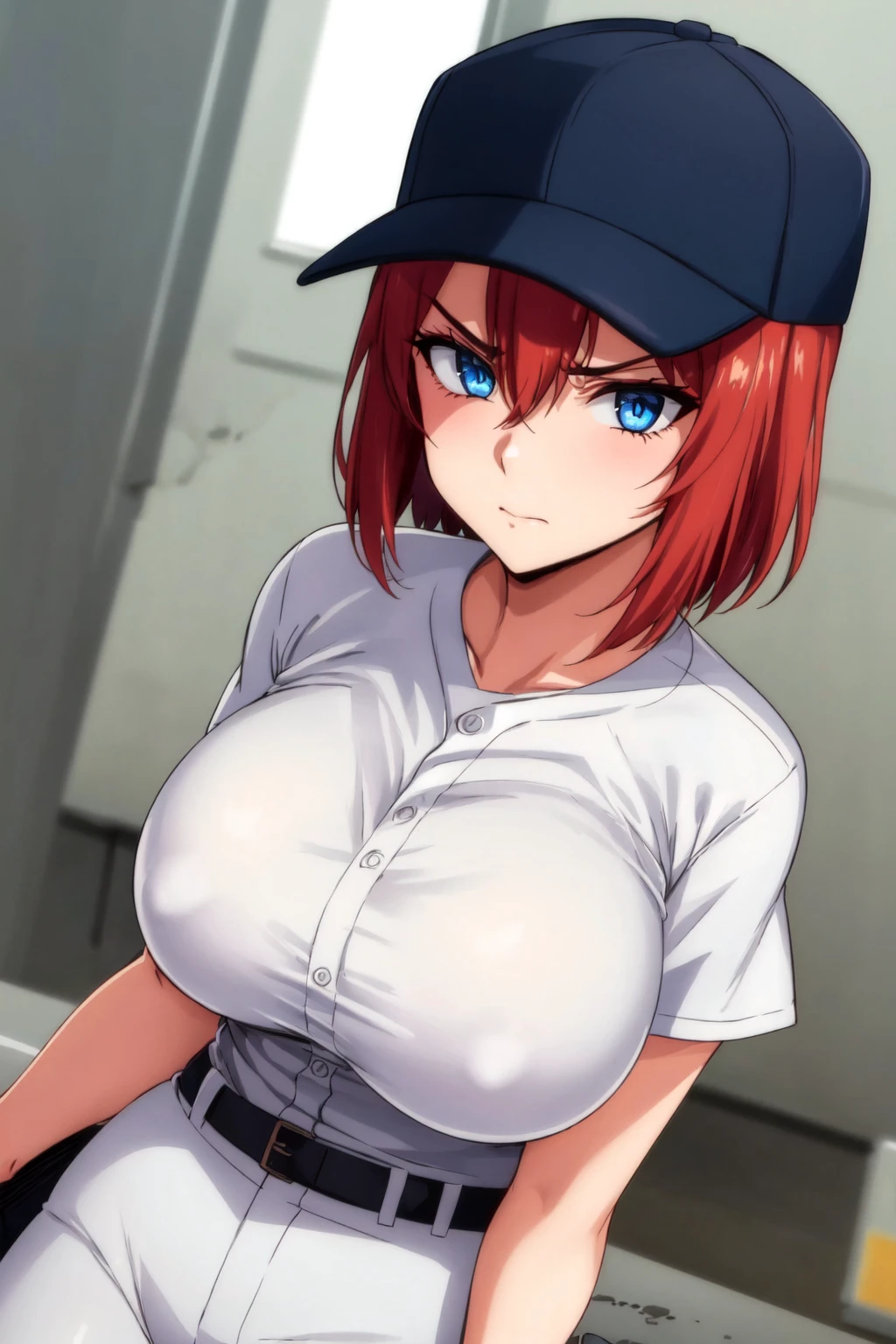 prompt template: red hair, blue eyes, akane nanao, short hair, hairclip