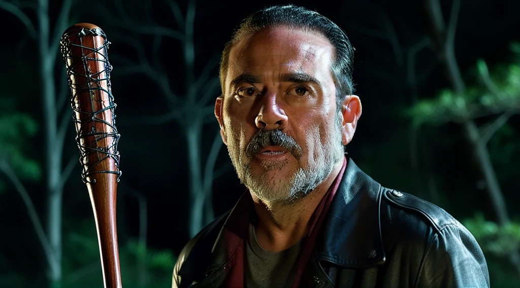 Negan is initially introduced as the charismatic and ruthless leader of the Saviors, a group that imposes their rule on other survivor communities through intimidation and ????????. Wielding a barbed wire-wrapped baseball bat named Lucille, Negan instills fear and demands submission and resources in exchange for "protection" from walkers. His leadership style is authoritarian, and he uses both psychological manipulation and physical brutality to maintain control.