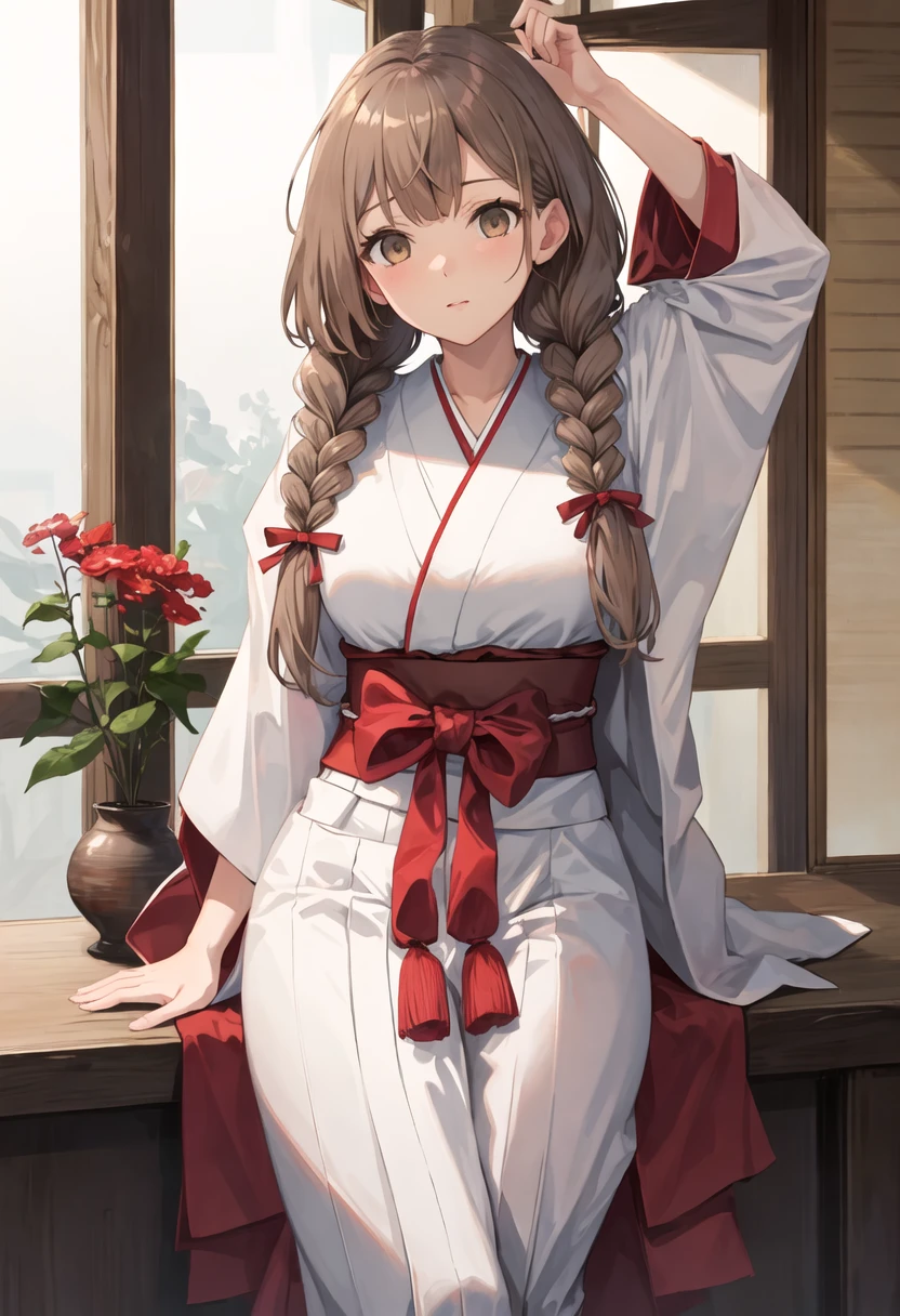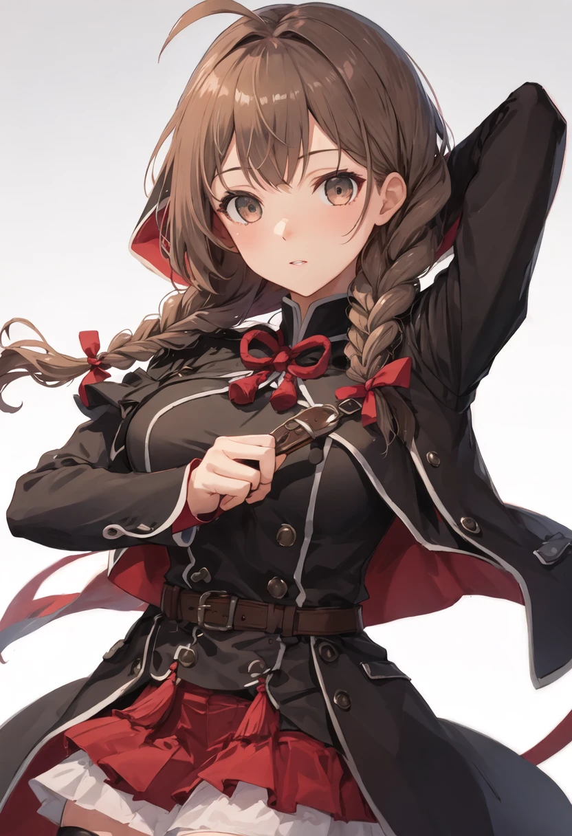 - The pruned character tags are brown_hair, long_hair, braid, twin_braids, brown_eyes, breasts, large_breasts, ribbon, red_ribbon, hair_ribbon, ahoge. You can add them into prompts when core features (e.g. hair color) of character is not so stable.