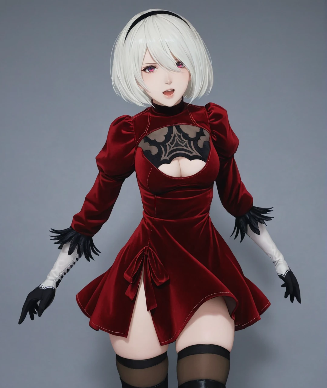 • Default Outfit (Just Type: Nier 2B wearing black mini dress )