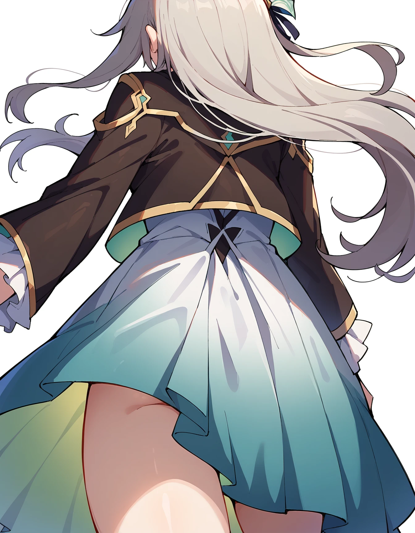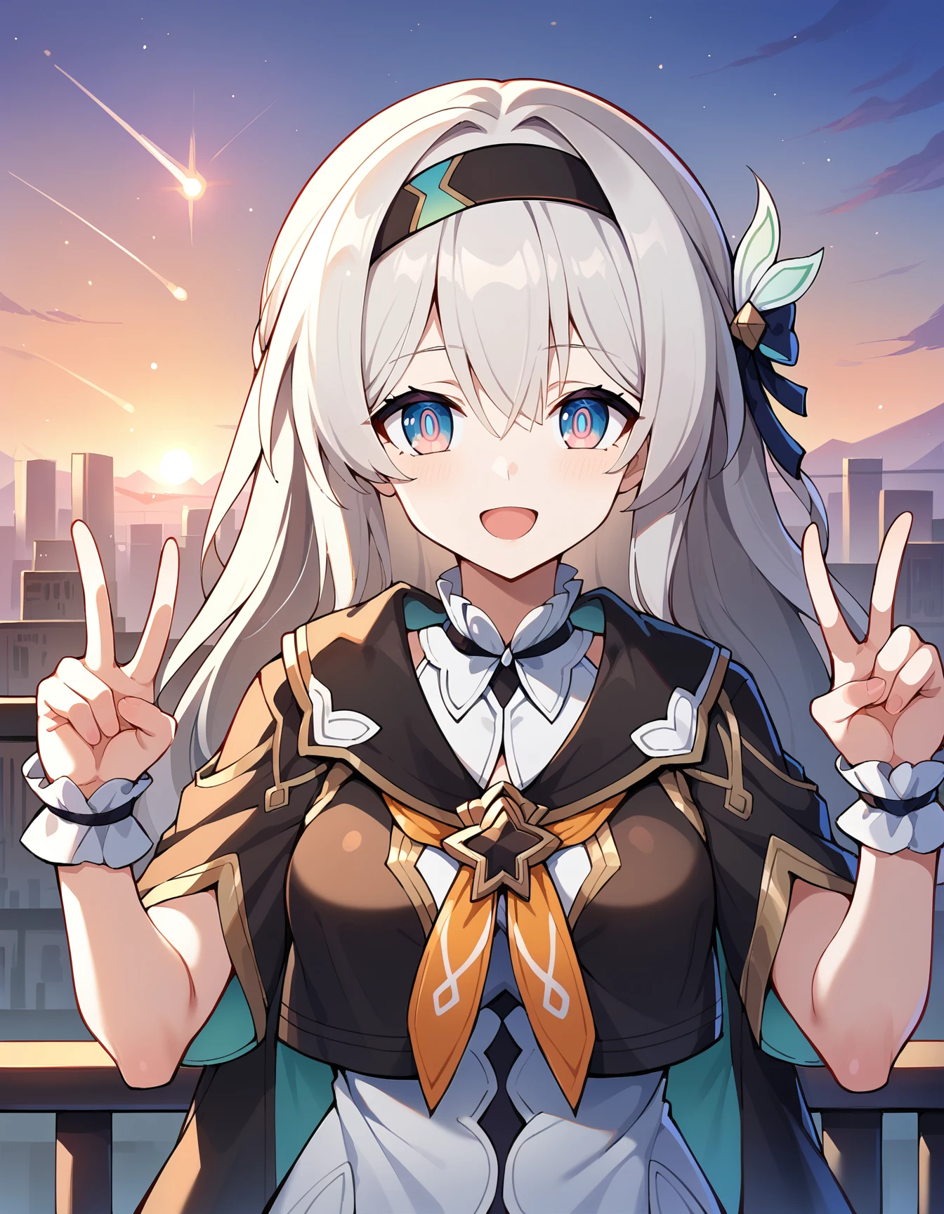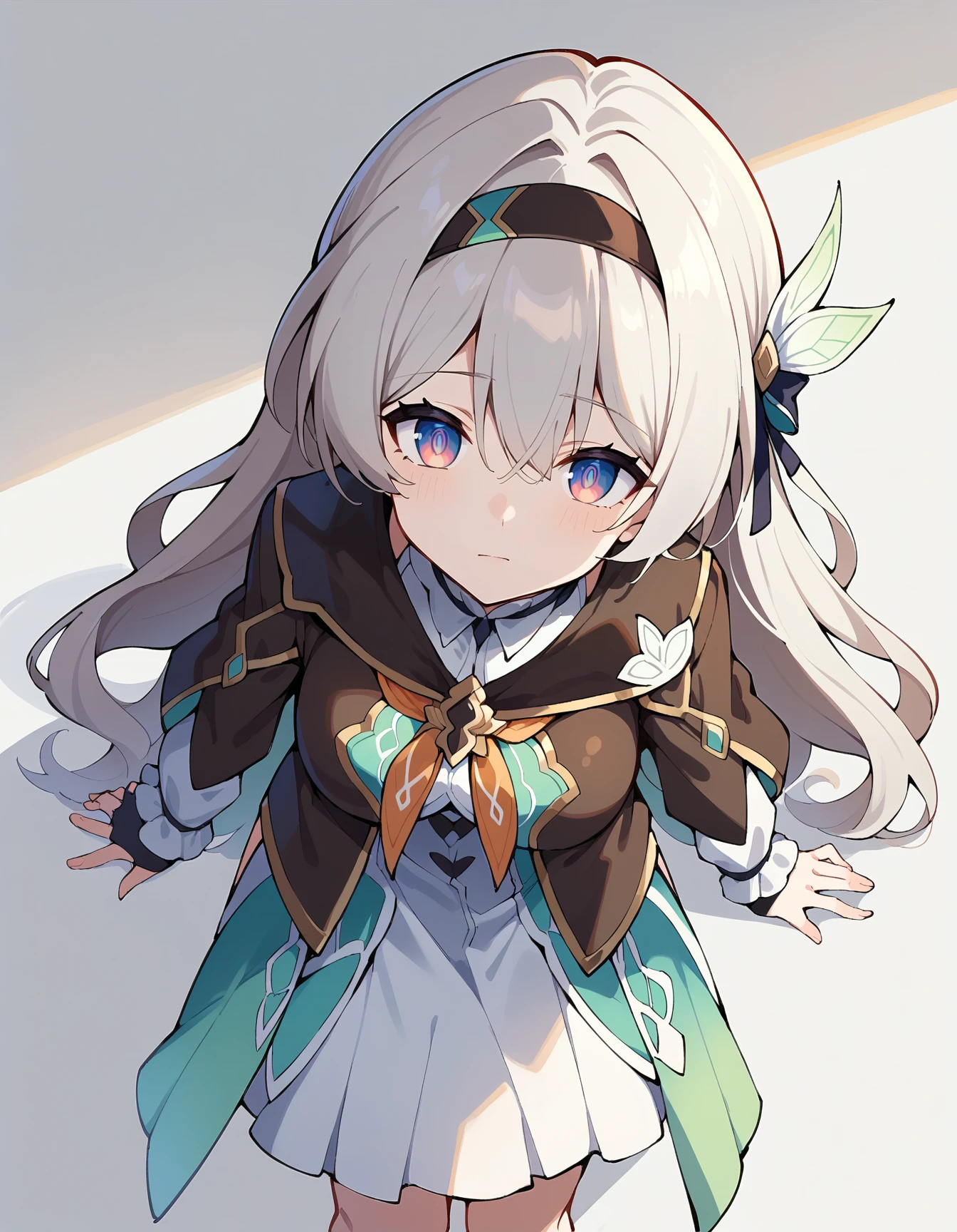 For her default outfit - fireflydef, jacket, dress, bow, hairband, hair ornament, grey hair