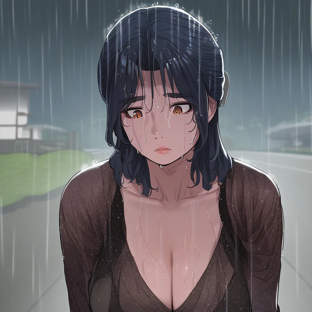 (( <lora:jo_soo-yeon :1> , jo_soo-yeon, piercing amber eyes, clear eyes, bright pupils, beautiful eyes, beautiful dark blue hair, medium long hair, very huge and shaggy breast, normal waist, wide hips, beautiful skin, sexy beauty, extraordinary beautiful woman, attractive woman, super sexy woman, lustful body, sexy woman with seductive obscene body, sensual body, voluptuous body, sexy milf, ))